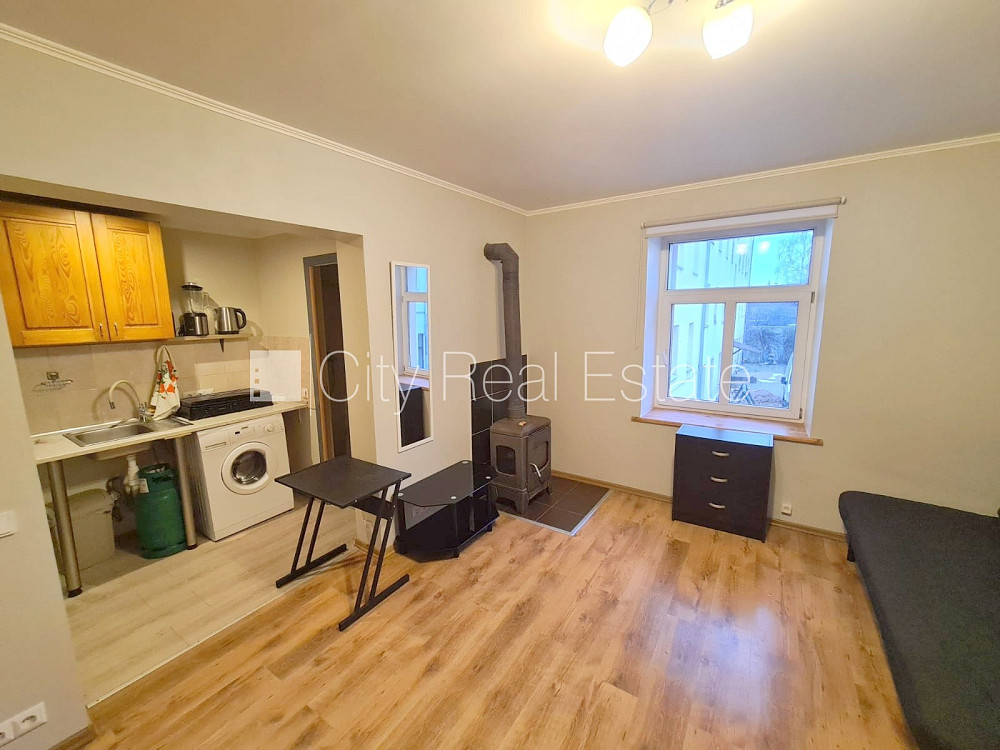 Fasādes māja, ieeja no ielas, logi vērsti uz pagalma pusi, istaba izolēta 18 m2, augstie griesti, malkas apkure, boilers karstajam ūdenim, plastikāta stikla pakešu logi, krāsotas sienas, jauna santehnika, lamināta parketa grīda, flīžu grīdas segums, sanitārais mezgls apvienots, dušas kabīne, tualete, iebūvēta virtuves iekārta, dīvāns, skapis, ledusskapis, gāzes plīts, veļas mašīna, slēgta kāpņu telpa, izīrē ar visu bildēs redzamo aprīkojumu, atbrīvots, slēdzot īres līgumu, Jums būs jāmaksā par pirmo īres mēnesi , kā arī jāiemaksā drošības depozīts viena mēneša īres maksas apmērā, izvēloties šo īpašumu, komisijas maksa par starpniecības pakalpojumiem ir vienāda ar vienu pusi (50%) no šī īpašuma viena mēneša īres maksas, CITY REAL ESTATE ID - 427242