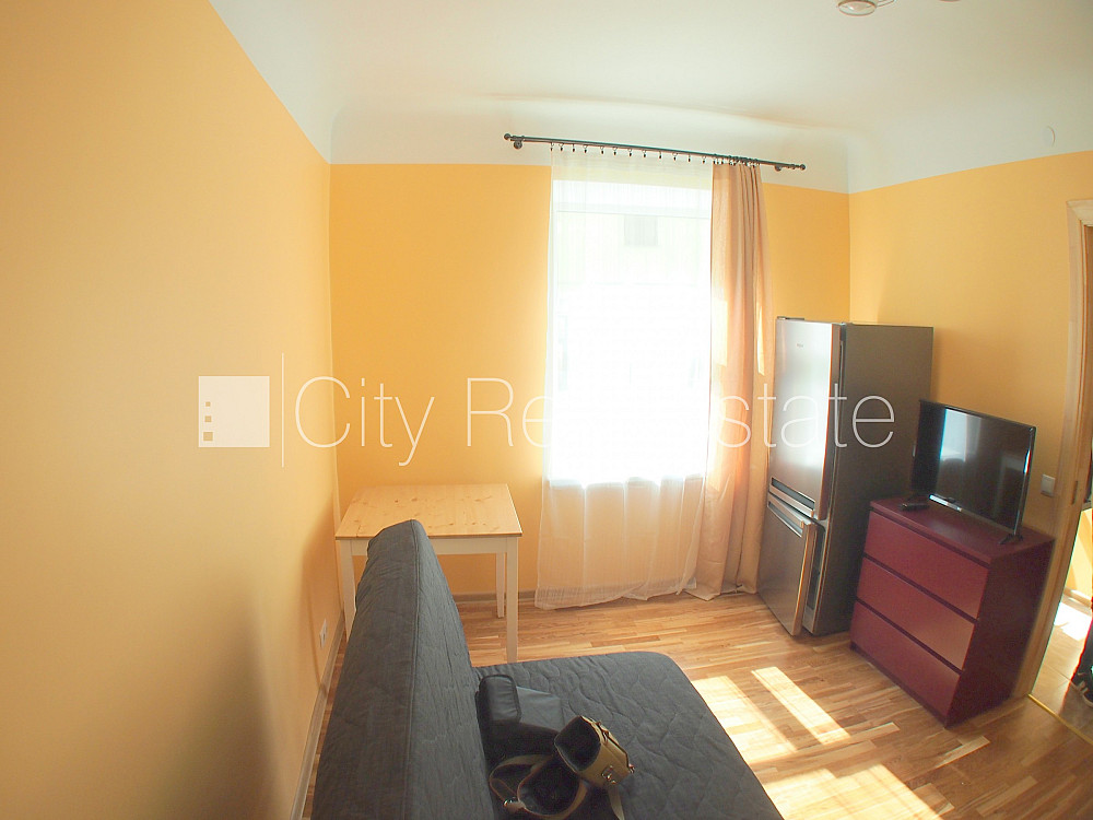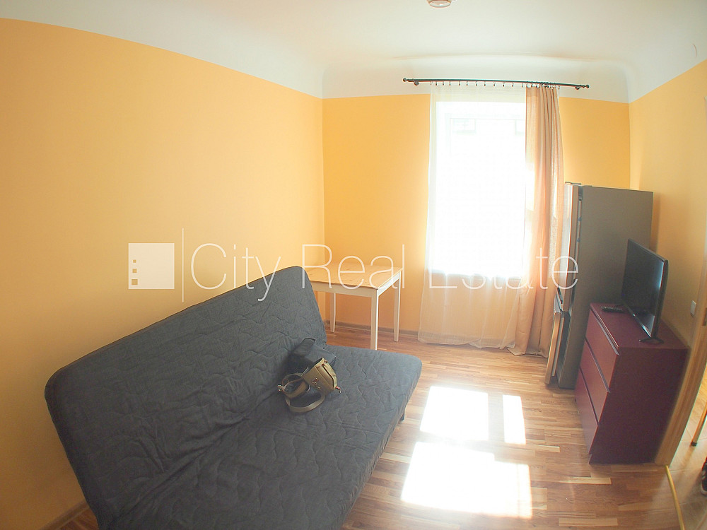 Fasādes māja, ieeja no ielas, logi vērsti uz pagalma pusi, istaba izolēta, virtuve, augstie griesti, saglabāta krāsns, malkas apkure, elektriskā apkure, pilnā apdare, plastikāta stikla pakešu logi, metāla durvis, izlīmētas tapetes, krāsotas sienas, jauna santehnika, lamināta parketa grīda, flīžu grīdas segums, sanitārais mezgls apvienots, dušas kabīne, tualete, iebūvēta virtuves iekārta, dīvāns, skapis, televizors, ledusskapis, elektriskā plīts, veļas mašīna, izīrē ar visu bildēs redzamo aprīkojumu, atbrīvots, slēdzot īres līgumu, Jums būs jāmaksā par pirmo īres mēnesi , kā arī jāiemaksā drošības depozīts viena mēneša īres maksas apmērā, izvēloties šo īpašumu, komisijas maksa par starpniecības pakalpojumiem ir vienāda ar vienu pusi (50%) no šī īpašuma viena mēneša īres maksas, CITY REAL ESTATE ID - 428050