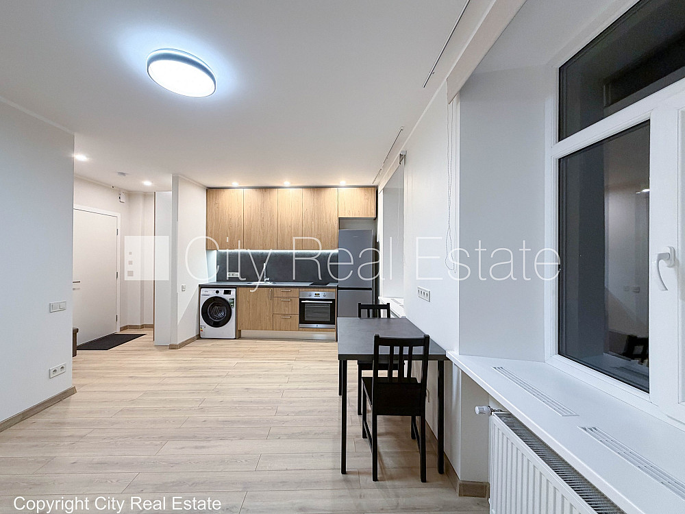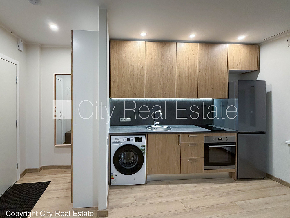 Fasādes māja, slēgta teritorija, studio tipa, virtuve apvienota ar viesistabu, centrālā apkure, plastikāta stikla pakešu logi, metāla durvis, jauna santehnika, lamināta parketa grīda, flīžu grīdas segums, sanitārais mezgls apvienots, dušas kabīne, iebūvēta virtuves iekārta, iebūvēti sienas skapji, kāpņu telpā koda atslēga, izvēloties šo īpašumu, komisijas maksa par starpniecības pakalpojumiem ir vienāda ar vienu pusi (50%) no šī īpašuma viena mēneša īres maksas, CITY REAL ESTATE ID - 502755