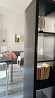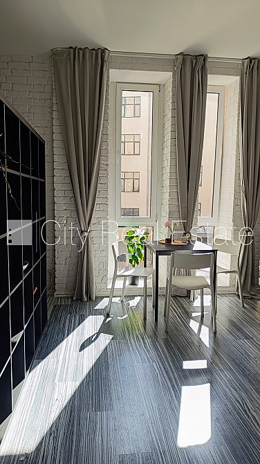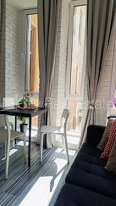 Fasādes māja, slēgts pagalms, ir lifts, kāpņu telpa pēc kapitālā remonta, studio tipa, virtuve apvienota ar istabu, centrālā apkure, sanitārais mezgls apvienots, dušas kabīne, iebūvēta virtuves iekārta, dīvāns, divguļamā gulta, virtuves galds, virtuves krēsli, skapis, kumode, ledusskapis, elektriskā plīts, cepeškrāsns, tvaika nosūcējs, izīrē ar visu bildēs redzamo aprīkojumu, spilveni, segas, gultas veļa, trauki, glāzes, CITY REAL ESTATE ID - 517580