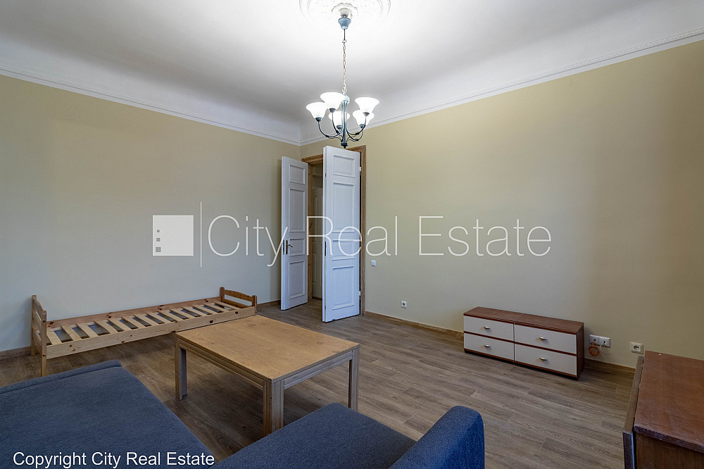 Fasādes māja, slēgts pagalms, ieeja no pagalma, logi vērsti uz ielas pusi, viena istaba izolēta, viena istaba caurstaigājama, virtuve, augstie griesti, centrālā apkure, apsildāma grīda vannas istabā, krāsotas sienas, sanitārais mezgls atsevišķs, vanna, tualete, iebūvēta virtuves iekārta, stūra dīvāns, gulta , divguļamā gulta, galds, skapis, trauku skapis, ledusskapis, gāzes plīts, tvaika nosūcējs, veļas mašīna, kāpņu telpā koda atslēga, izvēloties šo īpašumu, komisijas maksa par starpniecības pakalpojumiem ir vienāda ar vienu pusi (50%) no šī īpašuma viena mēneša īres maksas, CITY REAL ESTATE ID - 428572