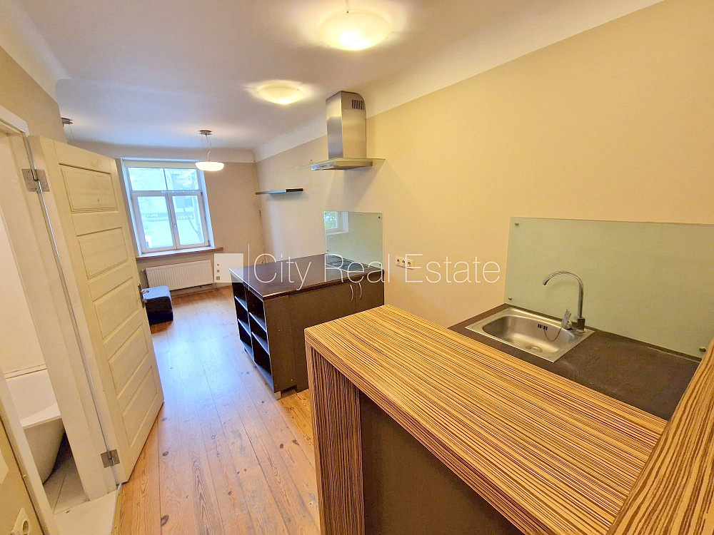 Fasādes māja, slēgts pagalms, iespēja nomāt autostāvvietu, ieeja no ielas un pagalma, logi vērsti mājas abās pusēs, viena istaba izolēta, studio tipa, virtuve apvienota ar istabu, mainīti radiatori, centrālā apkure, koka stikla pakešu logi, krāsotas sienas, jauna santehnika, koka dēļu grīdas segums, sanitārais mezgls apvienots, vanna, tualete, iebūvēta virtuves iekārta, dīvāns, gulta , virtuves galds, skapis, elektriskā plīts, tvaika nosūcējs, veļas mašīna, slēgta kāpņu telpa, uz 1 gadu, uz 2 gadiem, ar iespēju pagarināt līgumu, atbrīvots, slēdzot īres līgumu, Jums būs jāmaksā par pirmo īres mēnesi , kā arī jāiemaksā drošības depozīts, izvēloties šo īpašumu, komisijas maksa par starpniecības pakalpojumiem ir vienāda ar vienu pusi (50%) no šī īpašuma viena mēneša īres maksas, CITY REAL ESTATE ID - 434441