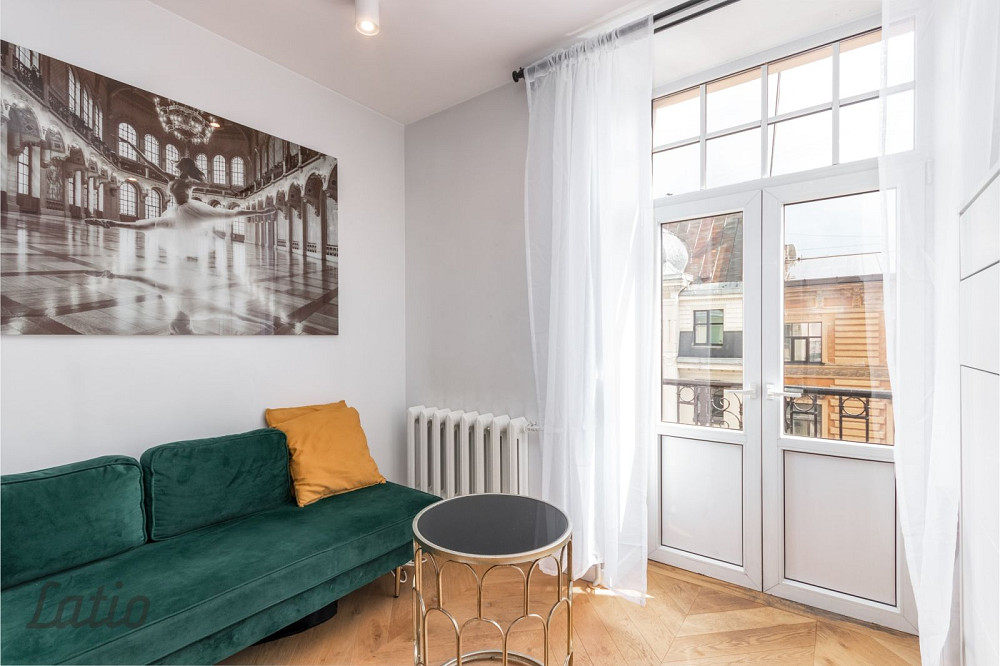 Gaišs un mājīgs studio tipa dzīvoklis Rīgas centrā, Aleksandra Čaka ielā 33. Dzīvoklis ir