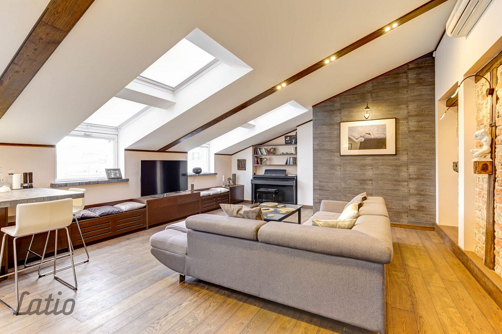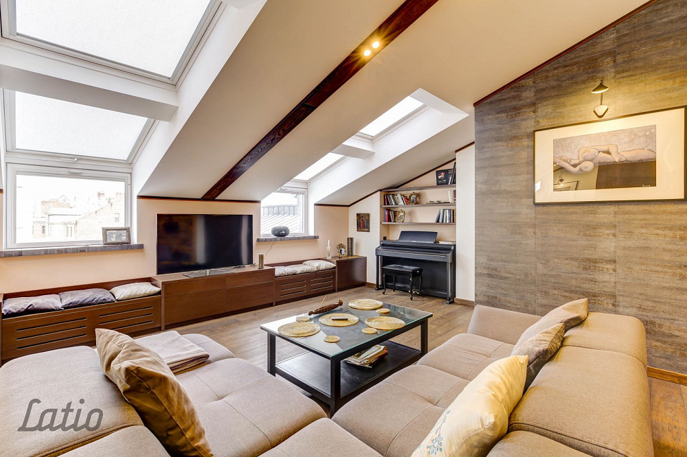 Īrei tiek piedāvāts mansarda dzīvoklis pašā pilsētas centrā. Līdzās veikali, kafejnīcas,