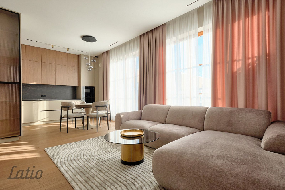 Izīrē ilgtermiņā plašu un gaišu tikko pabeigtu trīs istabu dzīvokli jaunajā projektā Lofts&Rosegold ar automašīnas stvāvvietas vietu pazemes garāžā.