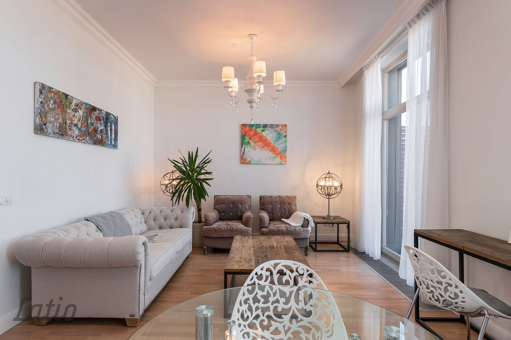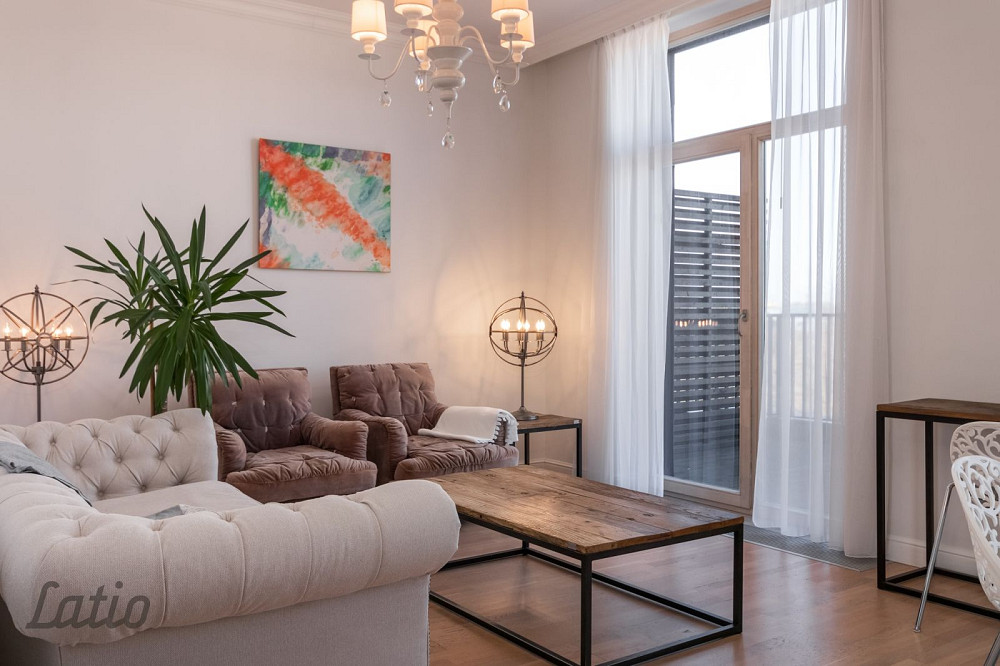 Ja vēlaties izbaudīt privātmājas priekšrocības - klusums, dārznieka sakopta teritorija, diennakts drošība, autostāvvieta, brīvā laika, un, ne tikai, pavadīšana svaigā gaisā, bet dzīvot pilsētā un par to visu nerūpēties, tad šis ir dzīvoklis tieši Jums! Penthouse dzīvoklis atrodas klusā, sakoptā, zaļā Pārdaugavas ielā. Lieliska infrastruktūra, netālu lielveikali, parki, sporta centri, kafejnīcas. Līdz pilsētas centram, lidostai Rīga 10 15 min.brauciens, Jūrmalai 20 min.. Sakopts, dārznieka veidots mājas iekšpagalms, diennakts fiziskā apsardze, koda durvis, lifts. Dzīvoklī ozolkoka, akmens flīžu grīdas, dzīvojamā istaba ar virtuves zonu un izeju uz plašu terasi, no kuras paveras brīnišķīgs skats uz apkārtnes ainavu, guļamistaba ar izeju uz otru terasi, no kuras arī paveras lielisks panorāmas skats. Dzīvoklis ir pilnībā mēbelēts un aprīkots ar visu nepieciešamo sadzīves tehniku. Dzīvoklis ļoti saulains un gaišs.