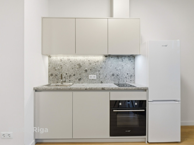 Mēbelēts Studio dzīvoklis Rīgas Centrā ar balkonu. Dzīvoklis ietver dzīvojamo istabu, kas apvienota ar virtuves zonu. Aprīkots ar mēbelēm, izvelkamu dīvānu, iebūvēto skapi, sadzīves tehniku, aizkariem un gaismas ķermeņiem. Ikmēneša īres maksa 550 EUR, papildus jāmaksā apsaimniekošanas maksa (fiksēti 60 EUR mēnesī) un komunālie maksājumi, ko individuāli patērē dzīvoklī. Tas atrodas izcilā lokācijā. Īpašumā ir labiekārtota teritorija, kurā tiek veikta videonovērošana, nodrošinot īrnieku drošību. Uzstādīts KONE lifts, un ēka ir siltināta, atbilstoši augstākajiem celtniecības standartiem, kas nodrošina zemus ikmēneša komunālos maksājumus. Īrniekiem tiek piedāvāts 24/7 diennakts atbalsta serviss, pārskatāma rēķinu apmaksas sistēma un papildu pakalpojumi, tostarp dzīvokļa uzkopšana. Pie īres līguma noslēgšanas tiek prasīts drošības depozīts divu mēnešu īres apmērā. Minimālais īres termiņš 1 gads.