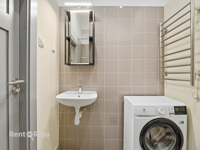 Mēbelēts Studio dzīvoklis Rīgas Centrā. Tas atrodās restaurētā vēsturiskā jūgendstila ēkā Rīgas centrā, Krišjāņa Valdemāra ielā 61. Ikmēneša īres maksa 450 EUR, papildus jāmaksā apsaimniekošanas maksa (fiksēti 50 EUR mēnesī) un komunālie maksājumi, ko individuāli patērē dzīvoklī. Gaišais studio tipa dzīvoklis ietver virtuves zonu, iebūvētos skapjus, atpūtas zonu ar ēdamgaldu un guļamdīvānu. Dzīvoklis aprīkots ar sadzīves tehniku, aizkariem un gaismas ķermeņiem. Dzīvokļa plašuma sajūtu veido erkers, no kura paveras skats uz Krišjāņa Valdemāra un Hanzas ielas krustojumu. Dzīvoklis atrodas izcilā lokācijā. Īpašumā ir labiekārtota teritorija, kurā tiek veikta videonovērošana, nodrošinot īrnieku drošību. Ēkā uzstādīts KONE lifts, un tā ir siltināta, atbilstoši augstākajiem celtniecības standartiem, kas nodrošina zemus ikmēneša komunālos maksājumus. Īrniekiem tiek piedāvāts 24/7 diennakts atbalsta serviss, pārskatāma rēķinu apmaksas sistēma un papildu pakalpojumi, tostarp dzīvokļa uzkopšana. Pie īres līguma noslēgšanas tiek prasīts drošības depozīts divu mēnešu īres apmērā. Minimālais īres termiņš 1 gads.