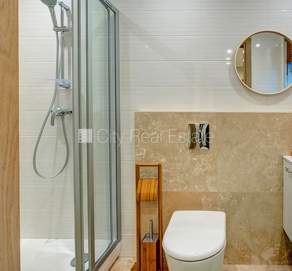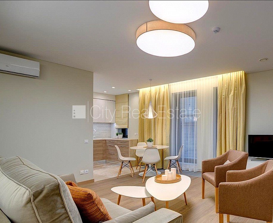 Jaunceltne, labiekārtota apzaļumota teritorija, bruģēts piebraucamais ceļš, garāža vienai automašīnai, garāžas vārti aprīkoti ar automatizētu atvēršanās un aizvēršanās sistēmu, iespēja nomāt pazemes autostāvvietu, luksuss apartamenti , ir lifts, gaisa kondicionēšanas sistēma, guļamistabu skaits 2 gab., studio tipa, virtuve apvienota ar viesistabu, augstie griesti, automatizēta apkures sistēma, koka stikla pakešu logi, krāsotas sienas, jauna santehnika, parketa grīda, flīžu grīdas segums, divi sanitārie mezgli, dušas kabīne, iebūvēta virtuves iekārta, iebūvēti sienas skapji, divguļamā gulta, galds, krēsli, gaisa kondicionieris, ledusskapis, trauku mazgājamā mašīna, elektriskā plīts, cepeškrāsns, veļas mašīna, optiskais internets, signalizācija, kāpņu telpā koda atslēga, līdz parkam 100 m, stratēģiski izdevīga vieta, bez dzīvniekiem, CITY REAL ESTATE ID - 510603