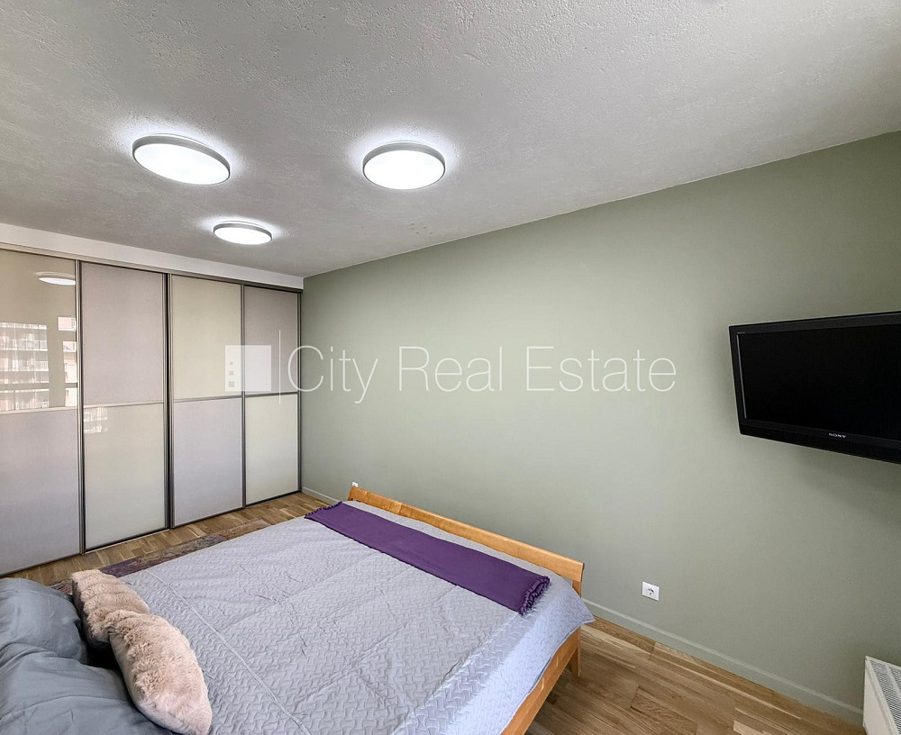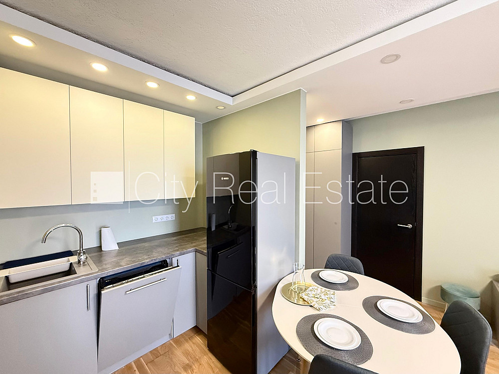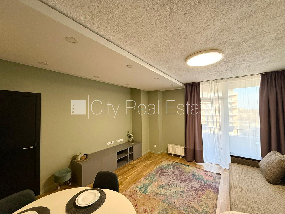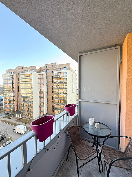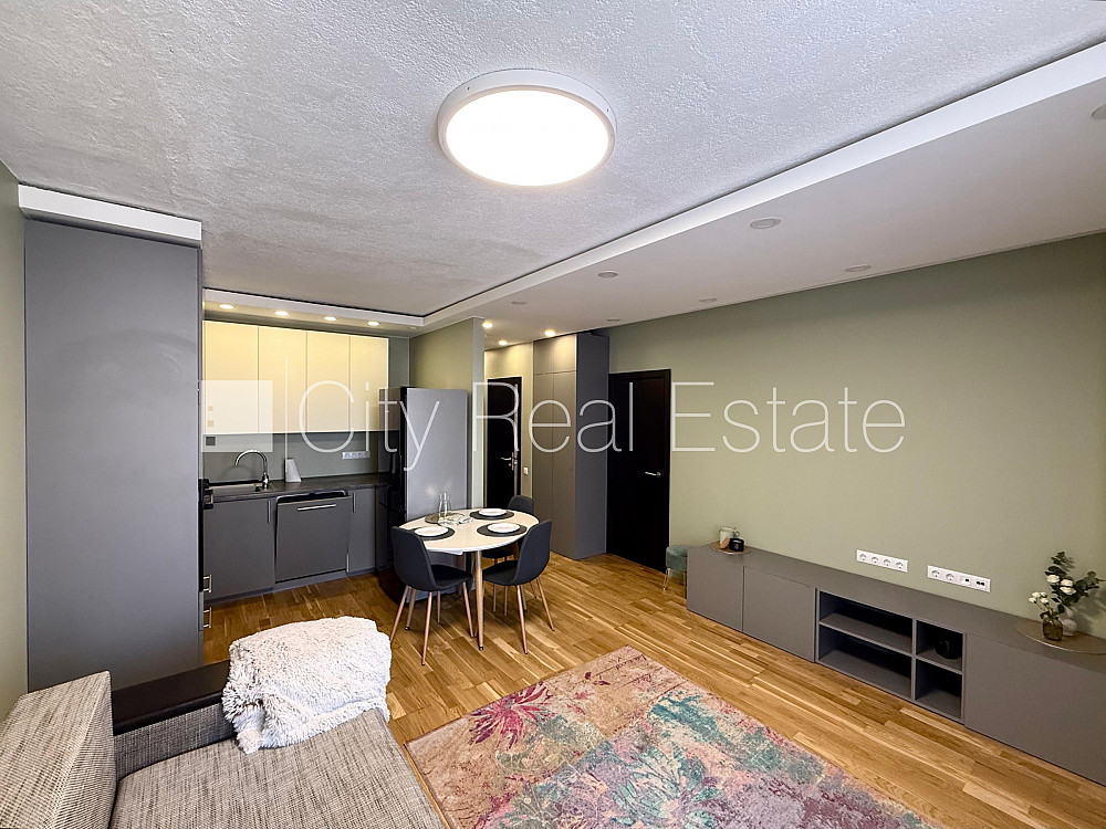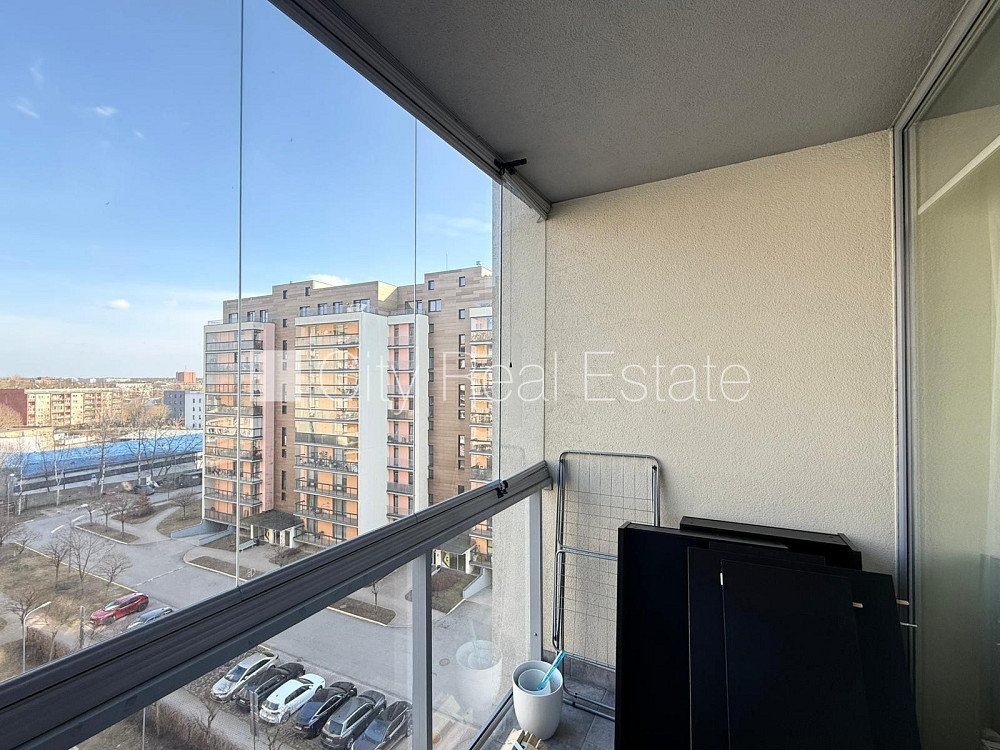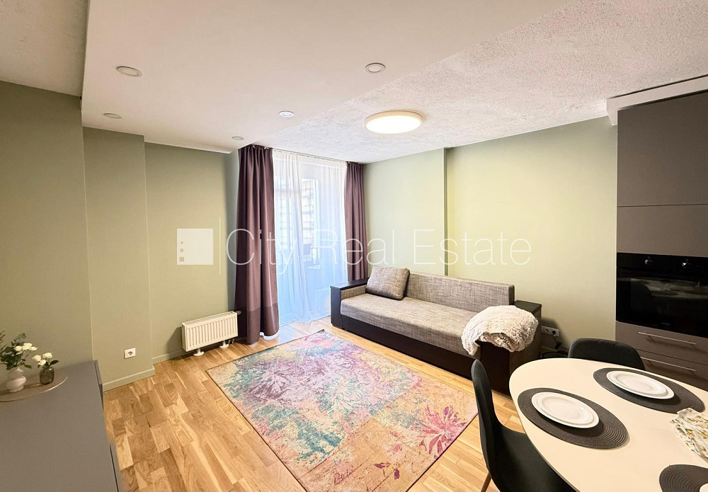 Jaunceltne, labiekārtota apzaļumota teritorija, slēgts pagalms, vieta automašīnai, ieeja no pagalma, pagalmā bērnu spēļu laukums, teritorijas stāvlaukums noklāts ar asfaltbetona segumu , divi balkoni, logi vērsti uz pagalma pusi, plašs skats no loga, guļamistabu skaits 1 gab., studio tipa, virtuve apvienota ar viesistabu, halle, radiatori ar termoregulatoriem, apkures skaitītāji, individuāla apkures sistēmas uzskaite, pilnā apdare, apsildāma grīda vannas istabā, lielie skatlogi, plastikāta stikla pakešu logi, metāla durvis, krāsotas sienas, jauna santehnika, parketa grīda, flīžu grīdas segums, sanitārais mezgls apvienots, vanna, dušas kabīne, iebūvēta virtuves iekārta, iebūvēti sienas skapji, dīvāns, divguļamā gulta, virtuves galds, atpūtas krēsli, virtuves krēsli, kumode, spogulis, televizors, ledusskapis, trauku mazgājamā mašīna, elektriskā plīts, cepeškrāsns, tvaika nosūcējs, veļas mašīna, veļas žāvētājs, internets, namrunis, slēgta kāpņu telpa, kāpņu telpā koda atslēga, izīrē ar visu bildēs redzamo aprīkojumu, atbrīvots, stratēģiski izdevīga vieta, CITY REAL ESTATE ID - 518030