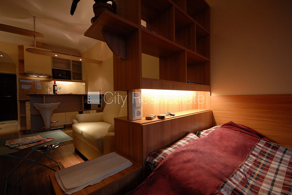 Jaunceltne, labiekārtota apzaļumota teritorija, slēgts pagalms, iespēja nomāt autostāvvietu, teritorijas stāvlaukums noklāts ar asfaltbetona segumu , ir lifts, logi vērsti uz ielas pusi, plašs skats no loga, studio tipa, virtuve apvienota ar istabu, halle, automatizēta apkures sistēma, uzstādīti karstā ūdens patēriņa skaitītāji, apkures skaitītāji, individuāla apkures sistēmas uzskaite, pilnā apdare, plastikāta stikla pakešu logi, metāla durvis, krāsotas sienas, jauna santehnika, lamināta parketa grīda, flīžu grīdas segums, sanitārais mezgls apvienots, vanna, iebūvēta virtuves iekārta, iebūvēti sienas skapji, dīvāns, gulta , virtuves galds, virtuves krēsli, spogulis, televizors, ledusskapis, elektriskā plīts, tvaika nosūcējs, mikroviļņu krāsns, veļas mašīna, internets, diennakts videonovērošana, kāpņu telpā koda atslēga, izīrē ar visu bildēs redzamo aprīkojumu, atbrīvots, stratēģiski izdevīga vieta, CITY REAL ESTATE ID - 513978