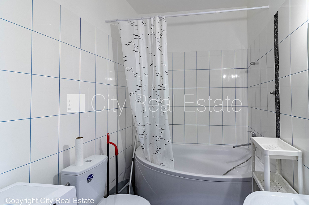 Jaunceltne, labiekārtots apzaļumots pagalms, ieeja no ielas, ir lifts, kāpņu telpa pēc kapitālā remonta, viena istaba izolēta, studio tipa, virtuve apvienota ar viesistabu, centrālā apkure, pilnā apdare, plastikāta stikla pakešu logi, metāla durvis, krāsotas sienas, parketa grīda, flīžu grīdas segums, sanitārais mezgls apvienots, vanna, dīvāns, divguļamā gulta, galds, krēsli, skapis, trauku skapis, ledusskapis, elektriskā plīts, cepeškrāsns, tvaika nosūcējs, veļas mašīna, optiskais internets, kāpņu telpā koda atslēga, izvēloties šo īpašumu, komisijas maksa par starpniecības pakalpojumiem ir vienāda ar vienu pusi (50%) no šī īpašuma viena mēneša īres maksas, CITY REAL ESTATE ID - 517948
