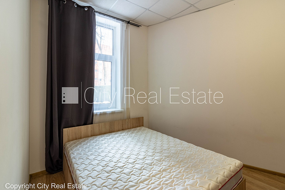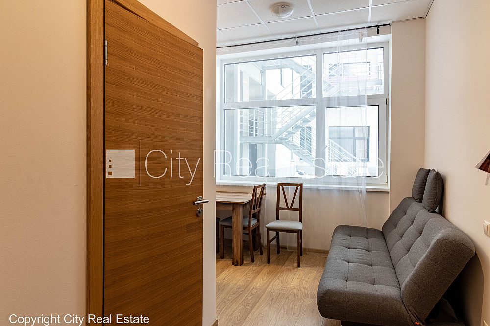 Jaunceltne, labiekārtots apzaļumots pagalms, ieeja no ielas, ir lifts, kāpņu telpa pēc kapitālā remonta, viena istaba izolēta, studio tipa, virtuve apvienota ar viesistabu, centrālā apkure, pilnā apdare, plastikāta stikla pakešu logi, metāla durvis, krāsotas sienas, parketa grīda, flīžu grīdas segums, sanitārais mezgls apvienots, vanna, dīvāns, divguļamā gulta, galds, krēsli, skapis, trauku skapis, ledusskapis, elektriskā plīts, cepeškrāsns, tvaika nosūcējs, veļas mašīna, optiskais internets, kāpņu telpā koda atslēga, izvēloties šo īpašumu, komisijas maksa par starpniecības pakalpojumiem ir vienāda ar vienu pusi (50%) no šī īpašuma viena mēneša īres maksas, CITY REAL ESTATE ID - 517948