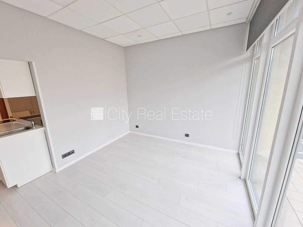 Jaunceltne, fasādes māja, slēgts pagalms, ieeja no ielas, ir lifts, kāpņu telpa pēc kapitālā remonta, balkons, logi vērsti uz pagalma pusi, studio tipa, virtuve apvienota ar istabu, augstie griesti, centrālā apkure, pilnā apdare, lielie skatlogi, alumīnija stikla pakešu logi, krāsotas sienas, jauna santehnika, lamināta parketa grīda, flīžu grīdas segums, sanitārais mezgls apvienots, dušas kabīne, tualete, iebūvēta virtuves iekārta, ledusskapis, elektriskā plīts, cepeškrāsns, tvaika nosūcējs, veļas mašīna, slēgta kāpņu telpa, izīrē ar visu bildēs redzamo aprīkojumu, atbrīvots, slēdzot īres līgumu, Jums būs jāmaksā par pirmo īres mēnesi , kā arī jāiemaksā drošības depozīts viena mēneša īres maksas apmērā, izvēloties šo īpašumu, komisijas maksa par starpniecības pakalpojumiem ir vienāda ar vienu pusi (50%) no šī īpašuma viena mēneša īres maksas, CITY REAL ESTATE ID - 426396