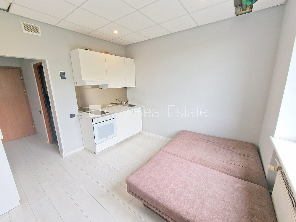 Jaunceltne, fasādes māja, slēgts pagalms, ieeja no ielas, ir lifts, kāpņu telpa pēc kapitālā remonta, logi vērsti uz ielas pusi, studio tipa, virtuve apvienota ar istabu, centrālā apkure, pilnā apdare, plastikāta stikla pakešu logi, krāsotas sienas, jauna santehnika, lamināta parketa grīda, flīžu grīdas segums, sanitārais mezgls apvienots, dušas kabīne, tualete, iebūvēta virtuves iekārta, ledusskapis, elektriskā plīts, cepeškrāsns, tvaika nosūcējs, veļas mašīna, slēgta kāpņu telpa, izīrē ar visu bildēs redzamo aprīkojumu, atbrīvots, slēdzot īres līgumu, Jums būs jāmaksā par pirmo īres mēnesi , kā arī jāiemaksā drošības depozīts viena mēneša īres maksas apmērā, izvēloties šo īpašumu, komisijas maksa par starpniecības pakalpojumiem ir vienāda ar vienu pusi (50%) no šī īpašuma viena mēneša īres maksas, CITY REAL ESTATE ID - 510161