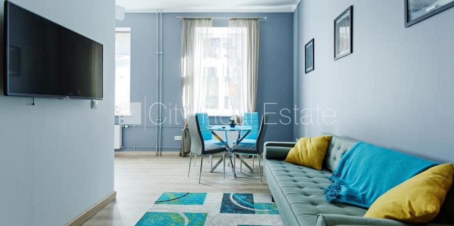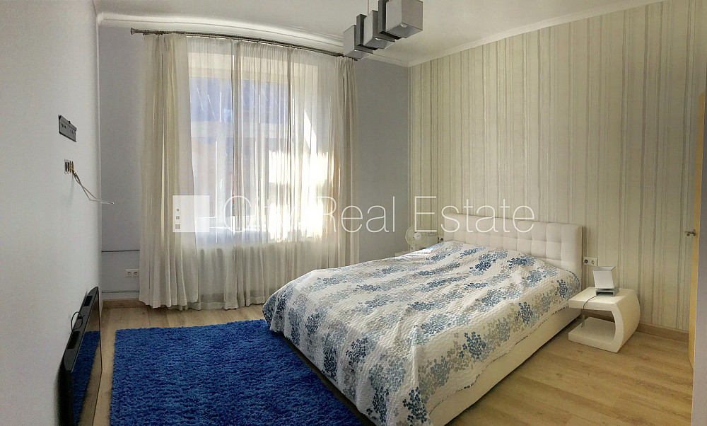 Jaunceltne, fasādes māja, slēgts pagalms, ieeja no pagalma, ir lifts, balkons 1,8 m2, terase 32,30 m2, logi vērsti uz pagalma pusi, gaisa ventilācijas sistēma, viena istaba izolēta, studio tipa, virtuve apvienota ar viesistabu, augstie griesti, radiatori ar termoregulatoriem, apkures skaitītāji, individuāla apkures sistēmas uzskaite, pilnā apdare, apsildāma grīda tualetē, apsildāma grīda vannas istabā, lielie skatlogi, koka stikla pakešu logi, iebūvēti gaismas ķermeņi, parketa grīda, marmora grīdas segums, sanitārais mezgls apvienots, vanna, iebūvēta virtuves iekārta, divguļamā gulta, ledusskapis, trauku mazgājamā mašīna, indukcijas plīts, cepeškrāsns, internets, video domofons, slēgta kāpņu telpa, kāpņu telpā koda atslēga, stratēģiski izdevīga vieta, CITY REAL ESTATE ID - 424698