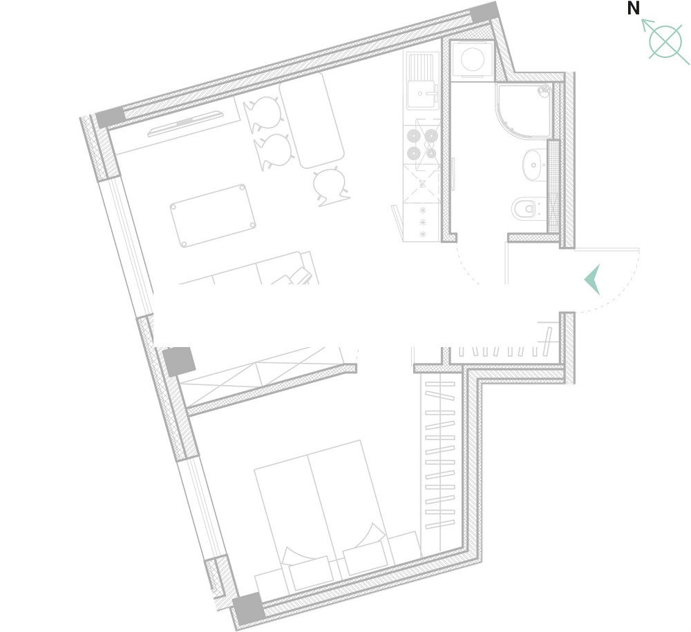 Jaunceltne, pagrabstāvā pieejama noliktava, labiekārtots apzaļumots pagalms, iespēja nomāt autostāvvietu, pazemes autostāvvieta, ir lifts, guļamistabu skaits 1 gab., studio tipa, virtuve apvienota ar viesistabu, krāsotas sienas, jauna santehnika, parketa grīda, sanitārais mezgls apvienots, iebūvēta virtuves iekārta, iebūvēti sienas skapji, ledusskapis, trauku mazgājamā mašīna, elektriskā plīts, cepeškrāsns, veļas mašīna, diennakts videonovērošana, kāpņu telpā koda atslēga, izvēloties šo īpašumu, komisijas maksa par starpniecības pakalpojumiem ir vienāda ar vienu pusi (50%) no šī īpašuma viena mēneša īres maksas, CITY REAL ESTATE ID - 517666