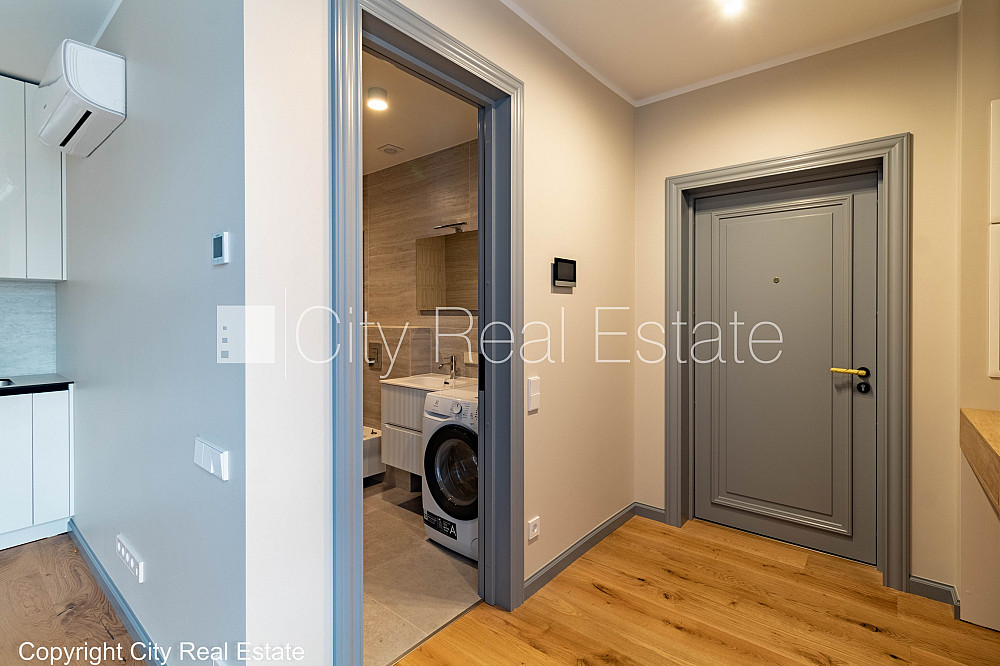 Jaunceltne, pagalma ēka, iespēja nomāt autostāvvietu, pagalmā bērnu spēļu laukums, ir lifts, viena istaba izolēta, studio tipa, virtuve apvienota ar istabu, krāsotas sienas, jauna santehnika, iebūvēti gaismas ķermeņi, lamināta parketa grīda, flīžu grīdas segums, sanitārais mezgls apvienots, vanna, iebūvēta virtuves iekārta, iebūvēti sienas skapji, ledusskapis, trauku mazgājamā mašīna, elektriskā plīts, cepeškrāsns, tvaika nosūcējs, veļas mašīna, slēgta kāpņu telpa, CITY REAL ESTATE ID - 517692