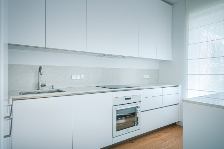 Piedāvā ilgtermiņa īrei premium klases 3 istabu dzīvokli elitārajā projektā "Mežaparka Rezidences". Dzīvoklis ēkas 1.stāvā. Dzīvoklis sastāv no ieejas koridora, dzīvojamās istabas, kura ir savienota ar virtuvi, un no kuras ir izeja uz plašu terasi un zaļo zonu(34 m2) un 2 guļamistabām, kā arī 2 vannasistabas (gan vanna, gan duša), garderobes telpa un saimniecības telpa. Dzīvokļa dzīvojamā platība 80.9 m2. + Kvaltitatīva virtuves iekārta ar iebūvētu tehniku, kā arī liels iebūvēts skapis priekšnamā; + Laba skaņas izloācija; + Regulējami radiatori un siltās grīdas vannasistabās. Sanmezglos mehāniskās nosūces sistēma ar sadzīves nosūces ventilatoru; + Uzstādīti kondicionieri. Boen ozolkoka trīsslāņu parkets. Augstas kvalitātes santehnika, izlietnes skapis ar Pushtoopen funkciju. Ierīkotas tālruņa, optiskā interneta komunikācijas. Namrunis. Bruģēti, apgaismoti gājēju celiņi un ielas, izveidotas atpūtas zonas ar soliņiem. Teritorija tiek uzraudzīta 24 h diennaktī. Katram dzīvoklim individuāls aukstā un siltā ūdens skaitītājs ar attālinātu rādījumu nolasīšanas iespēju. Individuāla gāzes apkures katlu māja, apkures un karstā ūdens nodrošināšanai. Siltuma patēriņa rādījumus iespējams nolasīt attālināti. Virszemes stāvvieta - par papildu īres maksu no apsaimniekotāja. Projekts Mežaparka Rezidences ir viens no vērienīgākajiem dzīvojamo īpašumu attīstības projektiem Baltijas valstīs. Tradicionālais Mežaparks ir papildināts ar jaunu, saulainu un zaļu dzīvojamo rajonu 31 hektāra platībā.Ērta dzīve zaļajā pilsētas daļā, tikai 15 min attālumā no centra! Komisijas maksa 500 EUR.