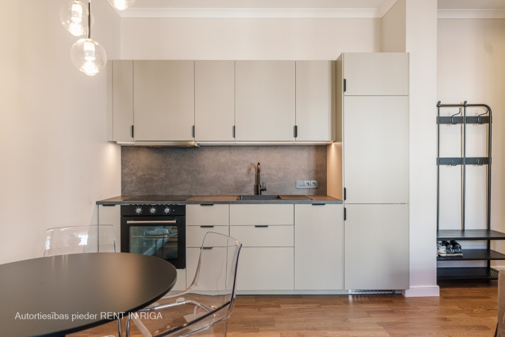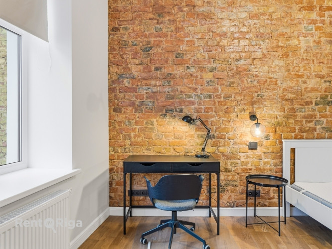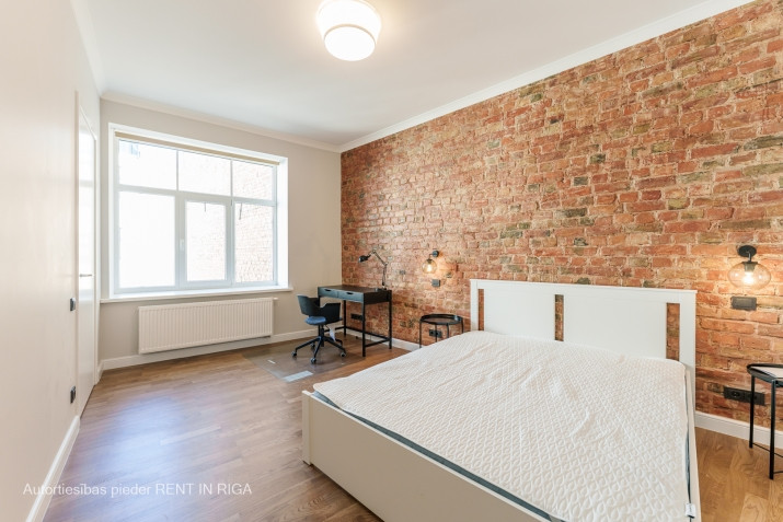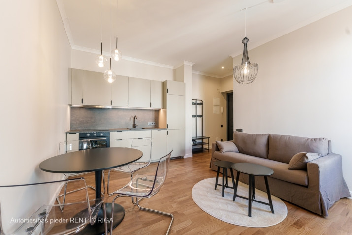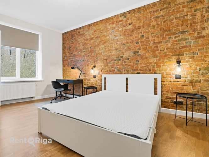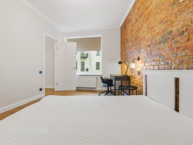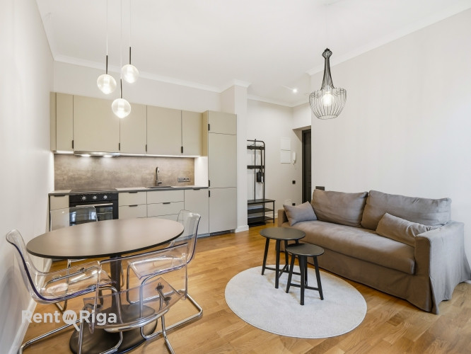 Prakstisks un mūsdienīgs 2-istabu dzīvoklis Rīgas vēsturiskajā centrā (UNESCO mantojums), ēku kompleksā, kurš ieguvis balvu par labāko renovēto fasādi. Pagalma māja. Pārdomāts dzīvokļa plānojums, kas sastāv no ieejas halles, sanmezgla, viesistabas, kas apvienota ar virtuves zonu un izeju uz balkonu, kā arī izolētas guļamistabas ar garderobes telpu, sastādot kopējo platību 45m2 + Mēbelēts, aprīkots ar visu nepieciešamo sadzīves un mājsaimniecības tehniku. Guļamistabas mebēles ar ierīkotu darba telpu, dzīvojamajā istabā divguļams izvelkams dīvāns, virtuves mēbeles un virtuves iekārta; + Dzīvojot šajā dzīvokli Tev būs iespēja izmantot arī sausu noliktavas telpu ēkas pagrabstāvā. Zemi komunālie pakalpojumi - vasarā līdz 80,- EUR, 130,- EUR ziemas mēnešos, kas tiek aprēķināti pēc katra dzīvokļa individuālā patēriņa (elektrība, ūdens, gāzes patēriņš ar individuālajiem skaitītājiem). Atrodas 15 minūšu gājiena no Vecrīgas, rokas stiepiena attālumā krāšņi parki, Berga bazars, iepirkšanās centrs Galleria Riga, fitnesa klubs, kafejnīcas, prestiži restorāni un ērta sabiedriskā transporta kustība.