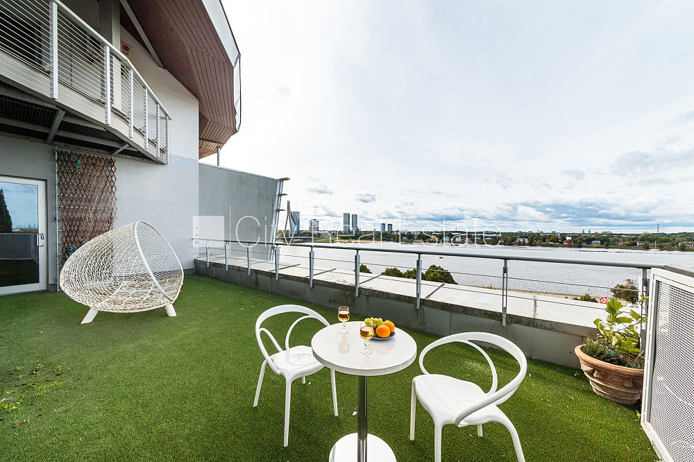 Projekts - Centra Nams, jaunceltne, fasādes māja, labiekārtota apzaļumota teritorija, vieta automašīnai, pazemes autostāvvieta, luksuss apartamenti , ir lifts, terase 25 m2, logi vērsti mājas abās pusēs, plašs skats no loga, guļamistabu skaits 1 gab., studio tipa, virtuve apvienota ar viesistabu, radiatori ar termoregulatoriem, centrālā apkure, apsildāma grīda vannas istabā, lielie skatlogi, alumīnija stikla pakešu logi, metāla durvis, jauna santehnika, ozola koka grīdas segums, parketa grīda, flīžu grīdas segums, sanitārais mezgls apvienots, dušas kabīne, iebūvēta virtuves iekārta, iebūvēti sienas skapji, divguļamā gulta, galds, krēsli, atpūtas krēsli, trīsvietīgais atpūtas krēsls, gaisa kondicionieris, ledusskapis, saldētava, trauku mazgājamā mašīna, elektriskā plīts, cepeškrāsns, veļas mašīna, veļas žāvētājs, optiskais internets, signalizācija, viedkaršu caurlaides sistēma, atbrīvots, līdz ostai 400 m, līdz parkam 120 m, stratēģiski izdevīga vieta, līdz Vecrīgai 300 m, CITY REAL ESTATE ID - 425591