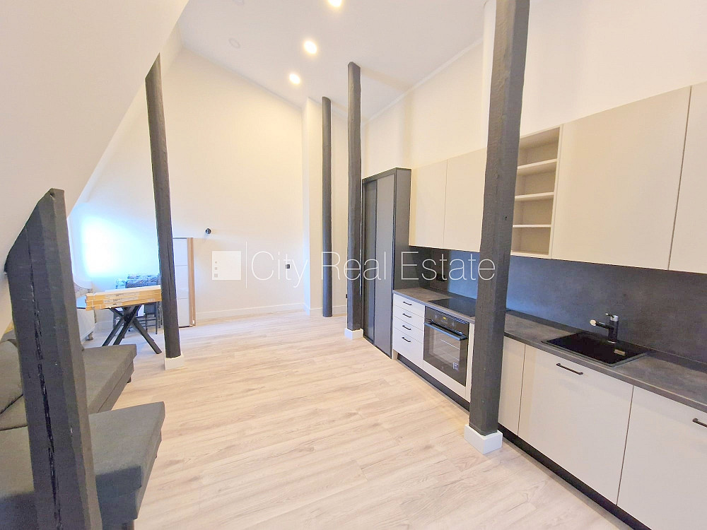 Projekts - Matīsa 38, fasādes māja, renovēta māja, labiekārtots apzaļumots pagalms, slēgta teritorija, ieeja no ielas, mansards, kāpņu telpa pēc kapitālā remonta, logi vērsti uz ielas pusi, plašs skats no loga, guļamistabu skaits 1 gab., studio tipa, virtuve apvienota ar istabu, augstie griesti, centrālā apkure, pilnā apdare, plastikāta stikla pakešu logi, jumta logi, krāsotas sienas, jauna santehnika, iebūvēti gaismas ķermeņi, lamināta parketa grīda, flīžu grīdas segums, sanitārais mezgls apvienots, dušas kabīne, tualete, iebūvēta virtuves iekārta, iebūvēti sienas skapji, dīvāns, izvelkamais stūra dīvāns, virtuves galds, krēsli, ledusskapis, elektriskā plīts, cepeškrāsns, tvaika nosūcējs, veļas mašīna, kāpņu telpā koda atslēga, izīrē ar visu bildēs redzamo aprīkojumu, uz 1 gadu, ar iespēju pagarināt līgumu, atbrīvots, stratēģiski izdevīga vieta, slēdzot īres līgumu, Jums būs jāmaksā par pirmo īres mēnesi , kā arī jāiemaksā drošības depozīts, izvēloties šo īpašumu, komisijas maksa par starpniecības pakalpojumiem ir vienāda ar vienu pusi (50%) no šī īpašuma viena mēneša īres maksas, CITY REAL ESTATE ID - 434573
