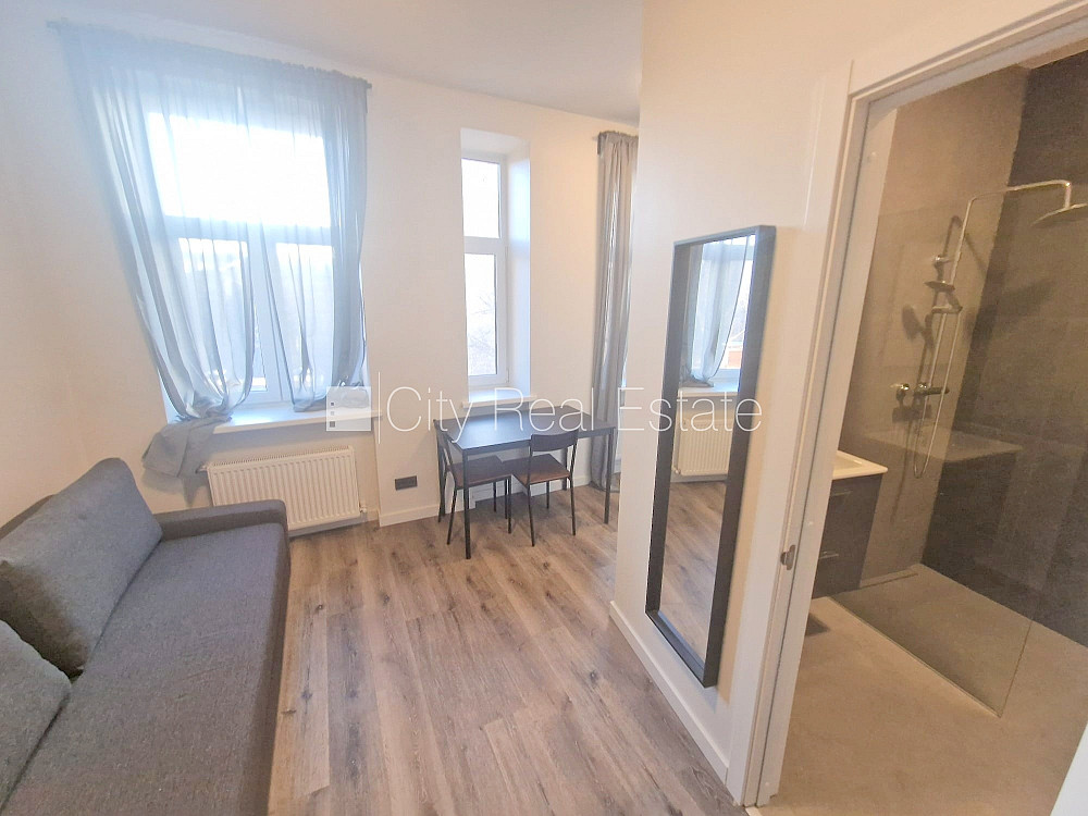 Projekts - Matīsa 38, pagalma ēka, renovēta māja, labiekārtots apzaļumots pagalms, slēgts pagalms, ieeja no ielas un pagalma, kāpņu telpa pēc kapitālā remonta, logi vērsti uz pagalma pusi, plašs skats no loga, studio tipa, virtuve apvienota ar istabu, augstie griesti, centrālā apkure, plastikāta stikla pakešu logi, krāsotas sienas, jauna santehnika, lamināta parketa grīda, flīžu grīdas segums, sanitārais mezgls apvienots, dušas kabīne, tualete, iebūvēta virtuves iekārta, iebūvēti sienas skapji, izvelkamais stūra dīvāns, virtuves galds, krēsli, ledusskapis, elektriskā plīts, cepeškrāsns, tvaika nosūcējs, veļas mašīna, slēgta kāpņu telpa, izīrē ar visu bildēs redzamo aprīkojumu, atbrīvots, slēdzot īres līgumu, Jums būs jāmaksā par pirmo īres mēnesi , kā arī jāiemaksā drošības depozīts, izvēloties šo īpašumu, komisijas maksa par starpniecības pakalpojumiem ir vienāda ar vienu pusi (50%) no šī īpašuma viena mēneša īres maksas, CITY REAL ESTATE ID - 426297