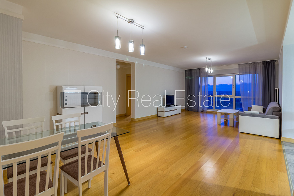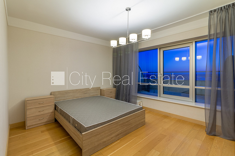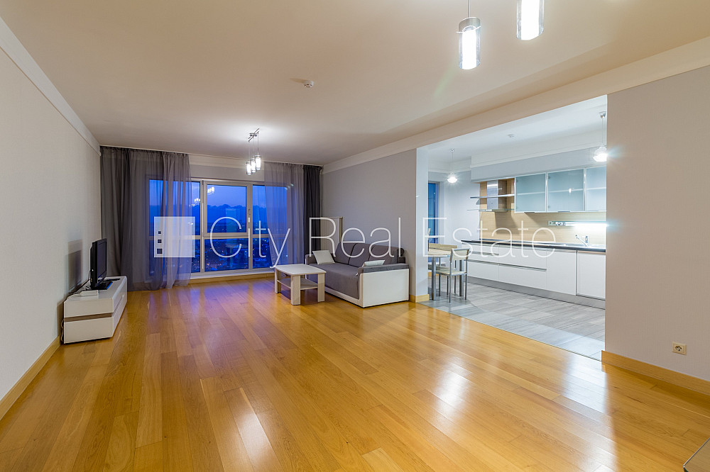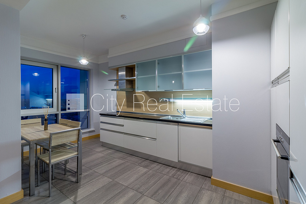 Projekts - Panorama Plaza, jaunceltne, pagrabstāvā pieejama noliktava, bruģēts piebraucamais ceļš, teritorijas iebrauktuves vārti aprīkoti ar automatizētu atvēršanās un aizvēršanās sistēmu, iespēja nomāt pazemes autostāvvietu, pagalmā bērnu spēļu laukums, ir lifts, divas terases 22,2 m2, guļamistabu skaits 3 gab., studio tipa, virtuve apvienota ar viesistabu, augstie griesti, radiatori ar termoregulatoriem, centrālā apkure, divi sanitārie mezgli, vanna, dušas kabīne, iebūvēta virtuves iekārta, iebūvēti sienas skapji, dīvāns, virtuves galds, ledusskapis, trauku mazgājamā mašīna, elektriskā plīts, cepeškrāsns, veļas mašīna, diennakts videonovērošana, video domofons, diennakts apsardze, viedkaršu caurlaides sistēma, slēdzot īres līgumu, Jums būs jāmaksā par pirmo īres mēnesi , kā arī jāiemaksā drošības depozīts viena mēneša īres maksas apmērā, CITY REAL ESTATE ID - 425596