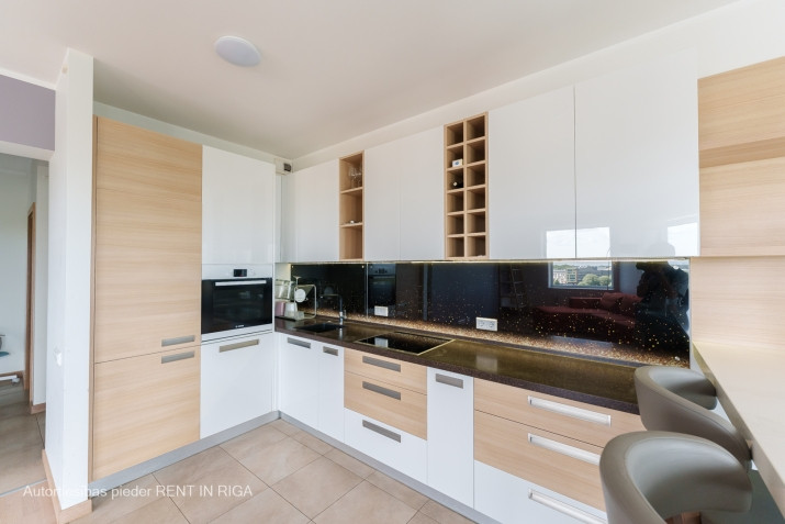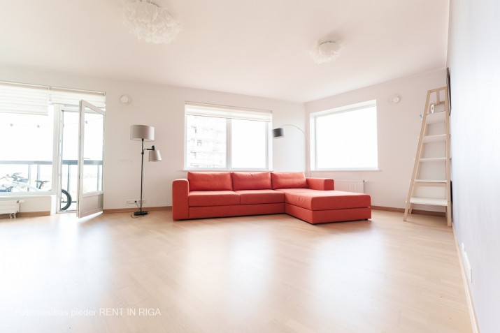Plašs 3 istabu dzīvoklis projektā "Skanstes virsotnes". Dzīvoklis ēkas 10. stāvā ar skaistu skatu. Dzīvokļa plānojums: ieejas koridors, 2 guļamistabas, 2 sanitārie mezgli, dzīvojamā istaba apvienota ar virtuves zonu un iestiklots balkons. Daļēji mēbelēts (mazākā guļamistaba ir bez mēbelēm). Plaši iebūvējami skapji, atsevišķa garderobes telpa vecāku guļamistabā. Ir gan duša, gan vanna. Virtuve aprīkota ar visu nepieciešamo sadzīves tehniku. Lielie logi sniedz naturālo dienas gaismu un plašuma izjūtu. Blakus parks, veikali, Olimpiskais sporta centrs, Arēna Rīga. Ir pieejama 1 autostāvvieta pagalmā (iebraukšana ar pulti). Minimālais īres termiņš - 1 gads.