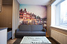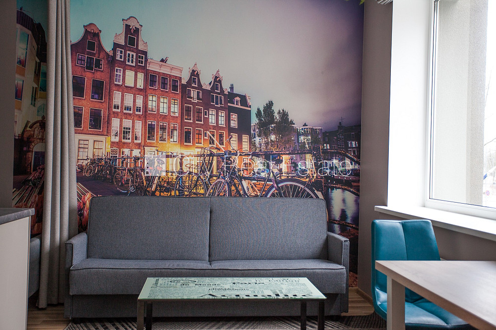 Renovēta māja, labiekārtota apzaļumota teritorija, ieeja no pagalma, kāpņu telpa pēc kapitālā remonta, logi vērsti uz pagalma pusi, studio tipa, virtuve apvienota ar istabu, radiatori ar termoregulatoriem, gāzes apkure, pilnā apdare, apsildāma grīda vannas istabā, plastikāta stikla pakešu logi, iebūvēti gaismas ķermeņi, lamināta parketa grīda, sanitārais mezgls apvienots, dušas kabīne, iebūvēta virtuves iekārta, iebūvēti sienas skapji, divguļamā gulta, ledusskapis, elektriskā plīts, tvaika nosūcējs, veļas mašīna, optiskais internets, diennakts videonovērošana, slēgta kāpņu telpa, līdz lidostai 5,4 km, stratēģiski izdevīga vieta, līdz lielveikalam 800 m, līdz autobusa pieturai 350 m, CITY REAL ESTATE ID - 506961