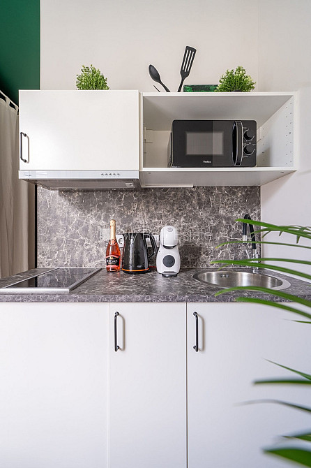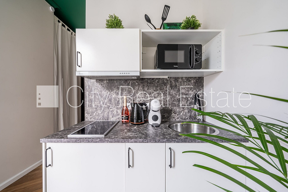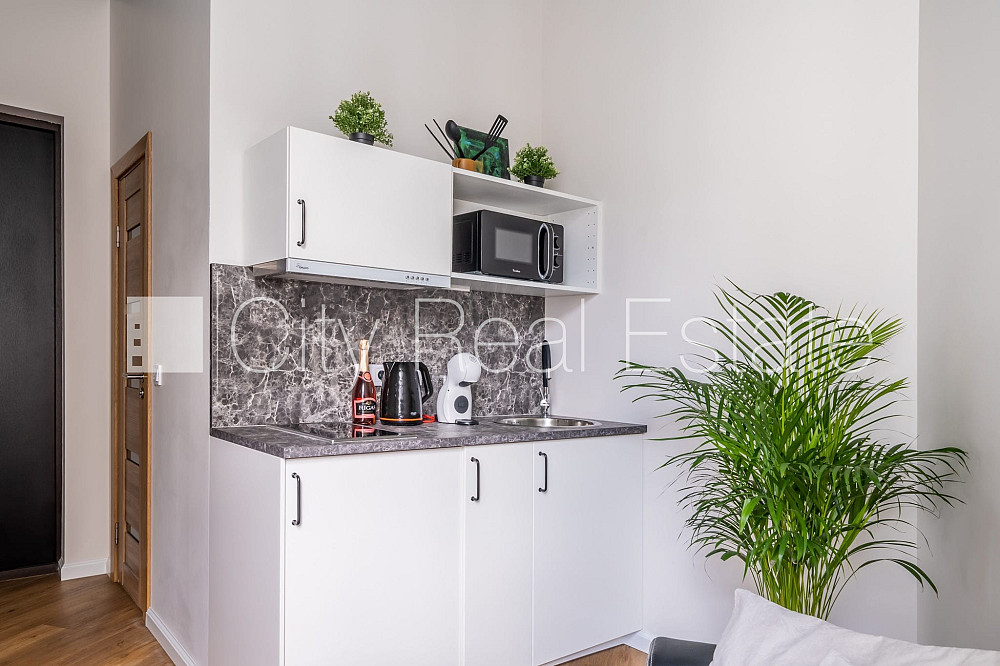 Renovēta māja, studio tipa, virtuve apvienota ar istabu, centrālā apkure, pilnā apdare, krāsotas sienas, lamināta parketa grīda, flīžu grīdas segums, sanitārais mezgls apvienots, iebūvēta virtuves iekārta, dīvāns, divguļamā gulta, virtuves galds, kumode, ledusskapis, elektriskā plīts, mikroviļņu krāsns, slēgta kāpņu telpa, kāpņu telpā koda atslēga, atbrīvots, stratēģiski izdevīga vieta, izvēloties šo īpašumu, komisijas maksa par starpniecības pakalpojumiem ir vienāda ar vienu pusi (50%) no šī īpašuma viena mēneša īres maksas, CITY REAL ESTATE ID - 511000
