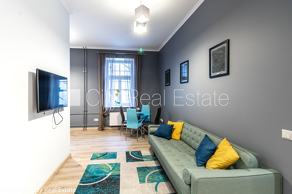 Renovēta māja, slēgts pagalms, ieeja no ielas, kāpņu telpa pēc kapitālā remonta, istabas izolētas, studio tipa, virtuve apvienota ar viesistabu, garderobe 3 m2, centrālā apkure, krāsotas sienas, jauna santehnika, lamināta parketa grīda, flīžu grīdas segums, vannas istabu skaits, sanitārais mezgls apvienots, vanna, iebūvēta virtuves iekārta, dīvāns, divguļamā gulta, virtuves galds, krēsli, televizors, ledusskapis, trauku mazgājamā mašīna, elektriskā plīts, cepeškrāsns, veļas mašīna, internets, diennakts videonovērošana, iespējama telpu uzkopšana, kāpņu telpā koda atslēga, uz 1 gadu, atbrīvo janvārī, slēdzot īres līgumu, Jums būs jāmaksā par pirmo īres mēnesi , kā arī jāiemaksā drošības depozīts, CITY REAL ESTATE ID - 424450