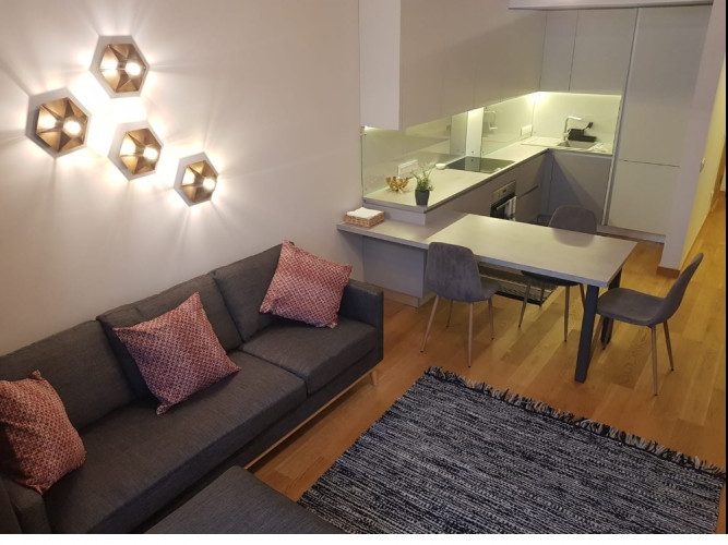 Tiek izīrēts dzīvoklis jaunājā projektā "Promenāde" ar skatu uz Daugavu. Dzīvoklis pilnībā mēbelēts, aprīkots. Dzīvokļu apdarē izmantoti visaugstvērtīgākie dabīgie apdares materiāli: ozolkoka parkets, palodzes, ozolkoka durvis, dubultās logu paketes, uzstādīta rekuperācijas sistēma. Vannas istabā siltā grīda un apsildāms dvieļu žāvētājs, Iebūvēta vācu virtuve LEICHT, BOSCH tehnika (t. sk. trauku mazgājamā mašīna), iebūvēti skapi, TV, internets. Lieliska infrastruktūra un sabiedriskā transporta plūsma. 5 min Latvijas Nacionālā Bibliotēka, 15 min gājiens līdz Vecrīgai dažādi restorāni, kafejnīcas un izklaides iespējas. Brauciens līdz lidostai 15 min.