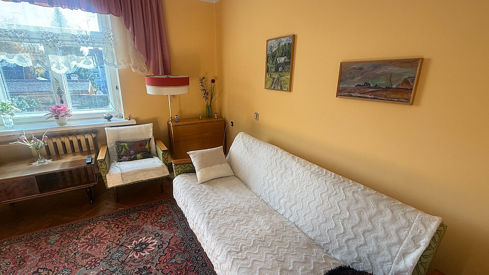 Сдаётся тёплая, солнечная и просторная двухкомнатная квартира в хорошем состоянии. Комнаты изолированные, на полу паркет. Раздельный санузел, кухня с кладовым шкафом, просторная прихожая с гардеробом. Окна выходят на тихую зелёную зону. Во дворе — бесплатная парковка. Квартира полностью меблирована и оснащена всей необходимой бытовой техникой. В подъезде кодовый замок. Удобное расположение: рядом магазины: «Kurši», т.ц. «Alfa», «Maxima», "Lidl", остановки общественного транспорта и Бикерниекский лес. Ищем аккуратных, некурящих арендаторов без животных.