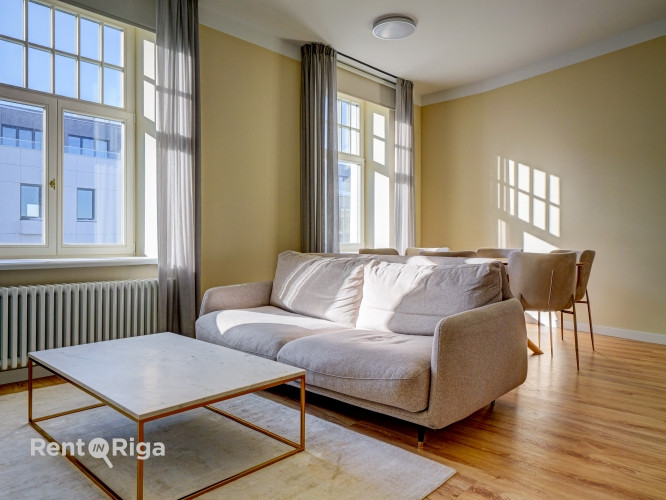 Stilīgs 2-istabu dzīvoklis jūgendstila ēkā Rīgas centrā. Dzīvo vietā, kur vēsture satiekas ar komfortu. Tikai pāris soļu attālumā no Klusā centra, renovētā un siltinātā jūgendstila ēkā ar KONE liftu, videonovērošanu un slēgtu, labiekārtotu teritoriju, pieejams elegants un pārdomāti iekārtots 2-istabu dzīvoklis. Plānojums: plašs walk-in skapis koridorī, gaiša viesistaba ar virtuves zonu, atsevišķa guļamistaba un stilīga vannasistaba ar dušu. Dzīvoklis aprīkots ar iebūvētu virtuves iekārtu, gultu, dīvānu, ietilpīgiem skapjiem, dizaina gaismekļiem un visu nepieciešamo ikdienas komfortam. Papildu bonusi: 24/7 klientu serviss Pārskatāma rēķinu sistēma Īres maksa: 750 EUR/mēn Apsaimniekošana: 70 EUR/mēn (fiksēta) Komunālie maksājumi pēc individuālā patēriņa Drošības depozīts 2 mēnešu īres apmērā Minimālais īres termiņš 1 gads