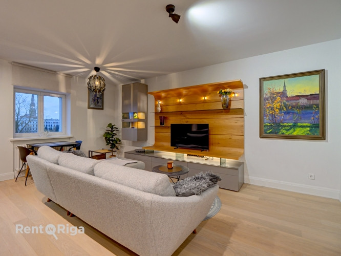 Šarmants dzīvoklis pilnībā renovētā ēkā ar elegantu fasādi, skatu uz parku un Latvijas Nacionālo operu, vien dažu soļu attālumā no Vecrīgas. Dzīvokļa logi ir vērsti uz parku. Plānojums: viesistaba ar apvienota ar virtuves zonu, skaista guļamistaba, vannas istaba ar dušu, priekštelpa ar iebūvēto skapi. Dzīvoklis ir pilnībā aprīkots ar visu nepieciešamo komfortablai dzīvošanai, kā arī ar kvalitatīvam jaunam mēbelēm. Premium klases apdare, ozolkoka parketa grīdas. Ēkai ir augsta energoefektivitāte, kas nodrošina zemus komunālos maksājumus. Dzīvoklī ir individuālie apkures skaitītāji. Dzīvoklis atrodas paša Rīgas centrā, tuvumā atrodas skaistāki Rīgas parki, Nacionāla Opera, Vecrīga, augstskolas, kā arī Rīgas labākie restorāni, kafejnīcas, veikali. Lieliska transporta satiksme, blakus autoosta un dzelzceļa stacija.