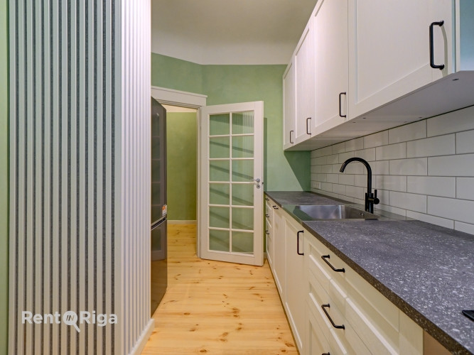 Īrei tiek piedāvāts renovēts dzīvoklis vēsturiskā ēkā. + Ērts plānojums ar divām izolētām guļamistabām, atsevišķu virtuvi un plašu viesistabu. + Klusa pagalma māja + Gaišs dzīvoklis + Pieejams ilgtermiņa īrei + Dzīvoklis pēc remonta nav izmantots + Jauna un pilnībā aprīkota virtuve + Atsevišķa, neliela veļas telpa ar veļas mašīnu