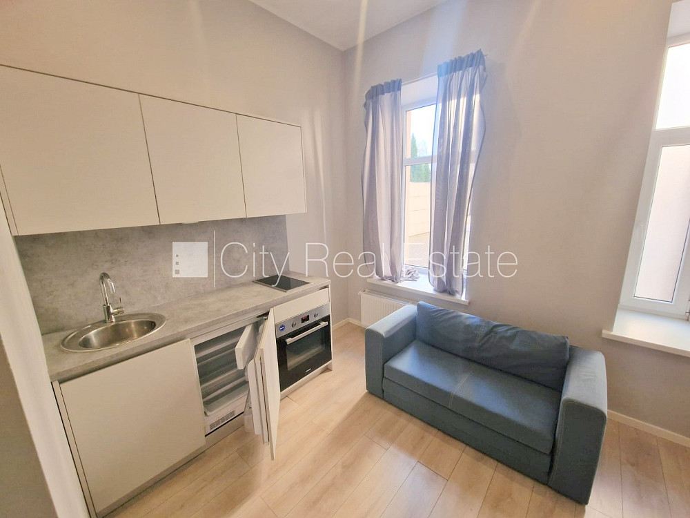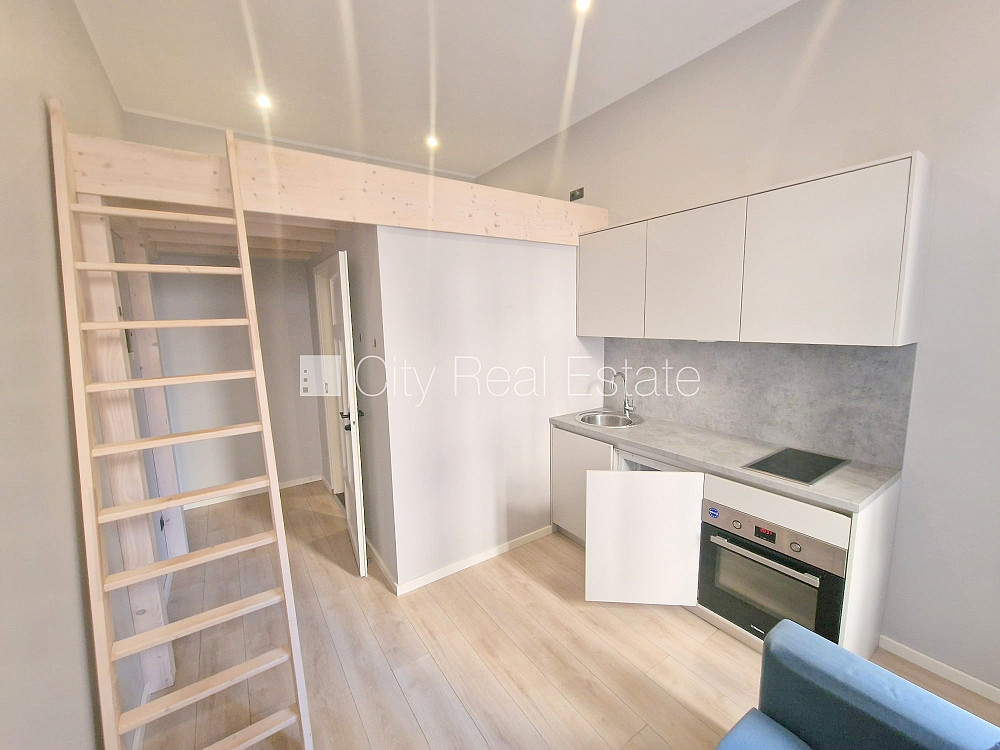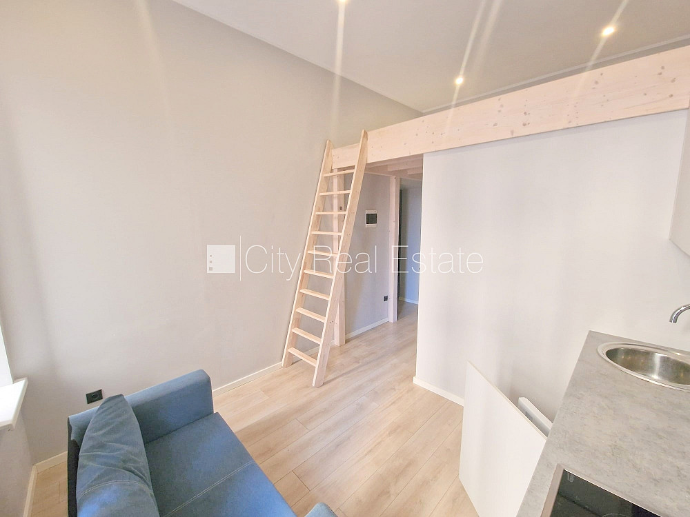 Pagalma ēka, fasādes māja, renovēta māja, slēgts pagalms, ieeja no ielas un pagalma, kāpņu telpa pēc kapitālā remonta, logi vērsti uz pagalma pusi, divstāvīgs, studio tipa, virtuve apvienota ar istabu, augstie griesti, centrālā apkure, pilnā apdare, plastikāta stikla pakešu logi, krāsotas sienas, jauna santehnika, lamināta parketa grīda, flīžu grīdas segums, sanitārais mezgls apvienots, dušas kabīne, tualete, iebūvēta virtuves iekārta, ledusskapis, elektriskā plīts, cepeškrāsns, tvaika nosūcējs, veļas mašīna, uz 1 gadu, ar iespēju pagarināt līgumu, atbrīvots, slēdzot īres līgumu, Jums būs jāmaksā par pirmo īres mēnesi , kā arī jāiemaksā drošības depozīts viena mēneša īres maksas apmērā, izvēloties šo īpašumu, komisijas maksa par starpniecības pakalpojumiem ir vienāda ar vienu pusi (50%) no šī īpašuma viena mēneša īres maksas, CITY REAL ESTATE ID - 515424