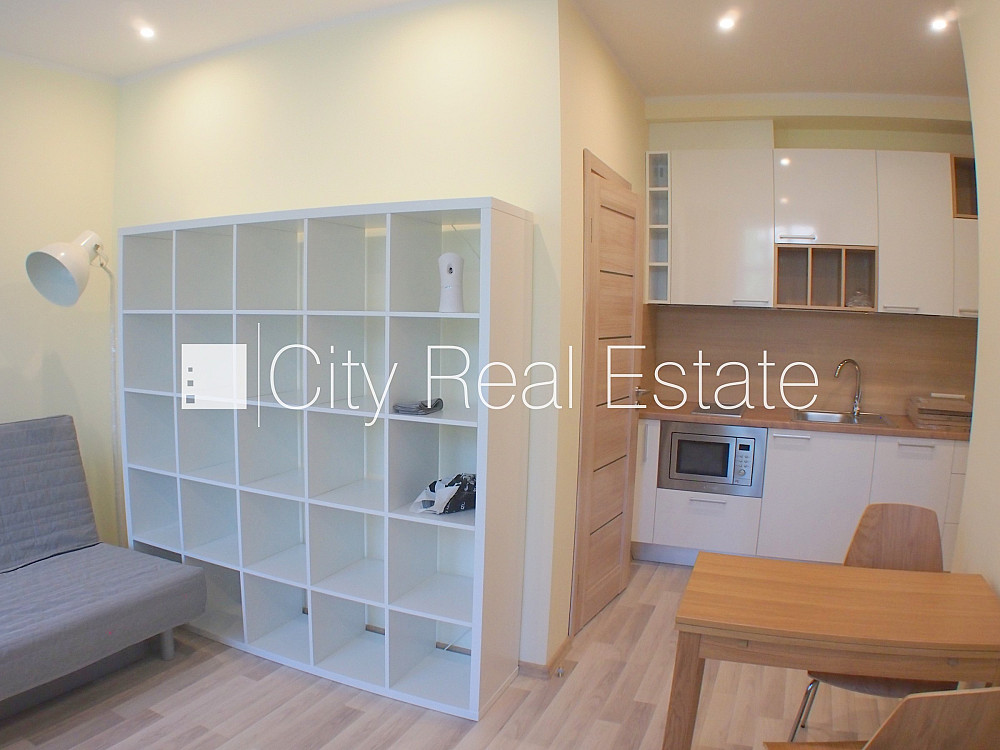 Pagalma ēka, renovēta māja, labiekārtota apzaļumota teritorija, bruģēts piebraucamais ceļš, vieta automašīnai, ieeja no pagalma, kāpņu telpa pēc kapitālā remonta, logi vērsti uz pagalma pusi, studio tipa, virtuve apvienota ar viesistabu, garderobe, augstie griesti, centrālā apkure, pilnā apdare, plastikāta stikla pakešu logi, krāsotas sienas, jauna santehnika, lamināta parketa grīda, flīžu grīdas segums, sanitārais mezgls apvienots, dušas kabīne, tualete, iebūvēta virtuves iekārta, dīvāns, skapis, televizors, ledusskapis, elektriskā plīts, tvaika nosūcējs, mikroviļņu krāsns, slēgta kāpņu telpa, izīrē ar visu bildēs redzamo aprīkojumu, atbrīvots, stratēģiski izdevīga vieta, slēdzot īres līgumu, Jums būs jāmaksā par pirmo īres mēnesi , kā arī jāiemaksā drošības depozīts viena mēneša īres maksas apmērā, izvēloties šo īpašumu, komisijas maksa par starpniecības pakalpojumiem ir vienāda ar vienu pusi (50%) no šī īpašuma viena mēneša īres maksas, CITY REAL ESTATE ID - 432750