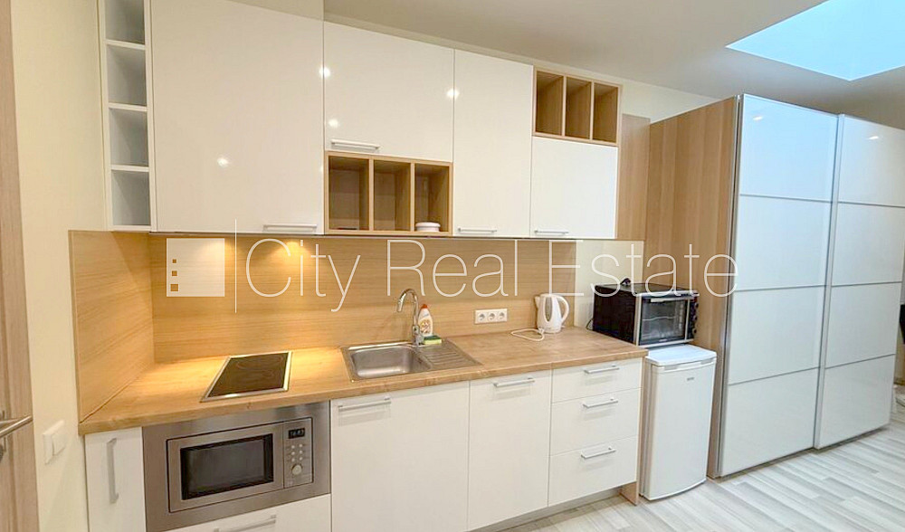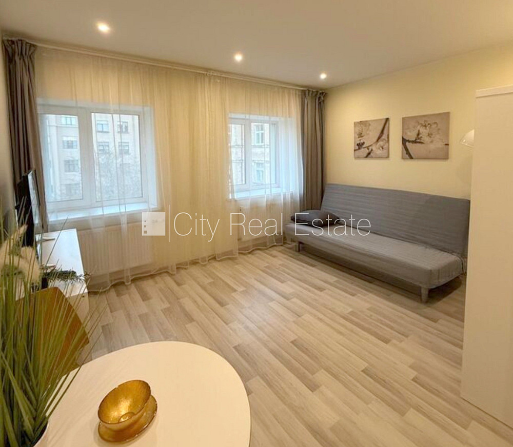 Pagalma ēka, renovēta māja, ieeja no pagalma, kāpņu telpa pēc kapitālā remonta, studio tipa, virtuve apvienota ar istabu, augstie griesti, centrālā apkure, plastikāta stikla pakešu logi, metāla durvis, lamināta parketa grīda, flīžu grīdas segums, sanitārais mezgls apvienots, dušas kabīne, tualete, iebūvēta virtuves iekārta, iebūvēti sienas skapji, izvelkamais stūra dīvāns, virtuves galds, krēsli, televizors, ledusskapis, elektriskā plīts, tvaika nosūcējs, mikroviļņu krāsns, veļas mašīna, internets, diennakts videonovērošana, slēgta kāpņu telpa, kāpņu telpā koda atslēga, izīrē ar visu bildēs redzamo aprīkojumu, atbrīvots, stratēģiski izdevīga vieta, slēdzot īres līgumu, Jums būs jāmaksā par pirmo īres mēnesi , kā arī jāiemaksā drošības depozīts, izvēloties šo īpašumu, komisijas maksa par starpniecības pakalpojumiem ir vienāda ar vienu pusi (50%) no šī īpašuma viena mēneša īres maksas, CITY REAL ESTATE ID - 425376