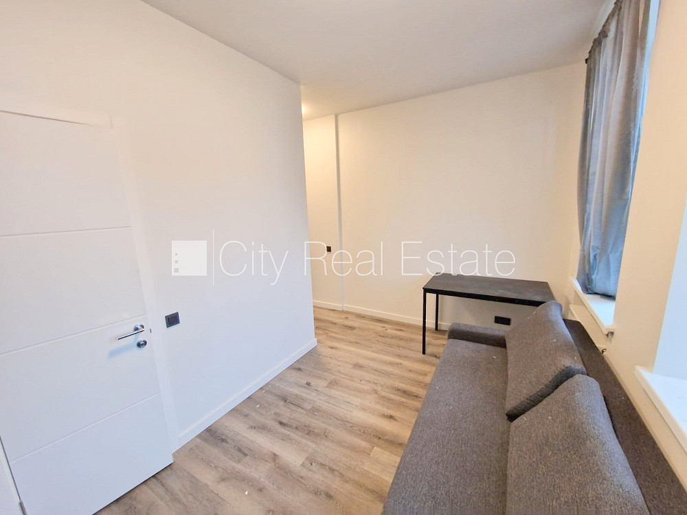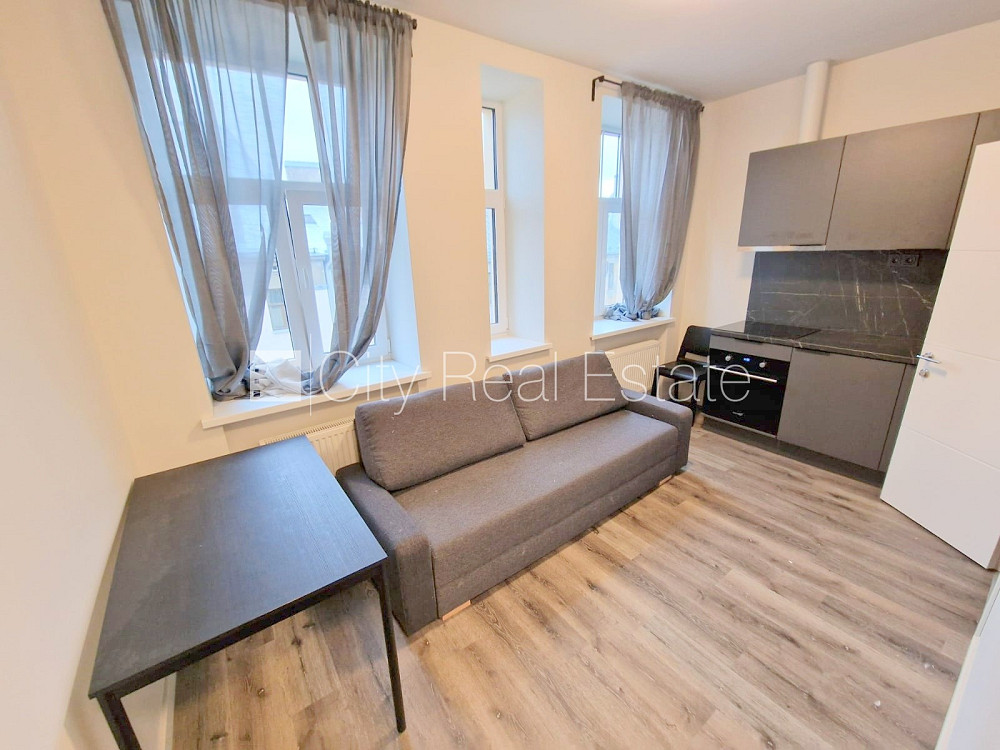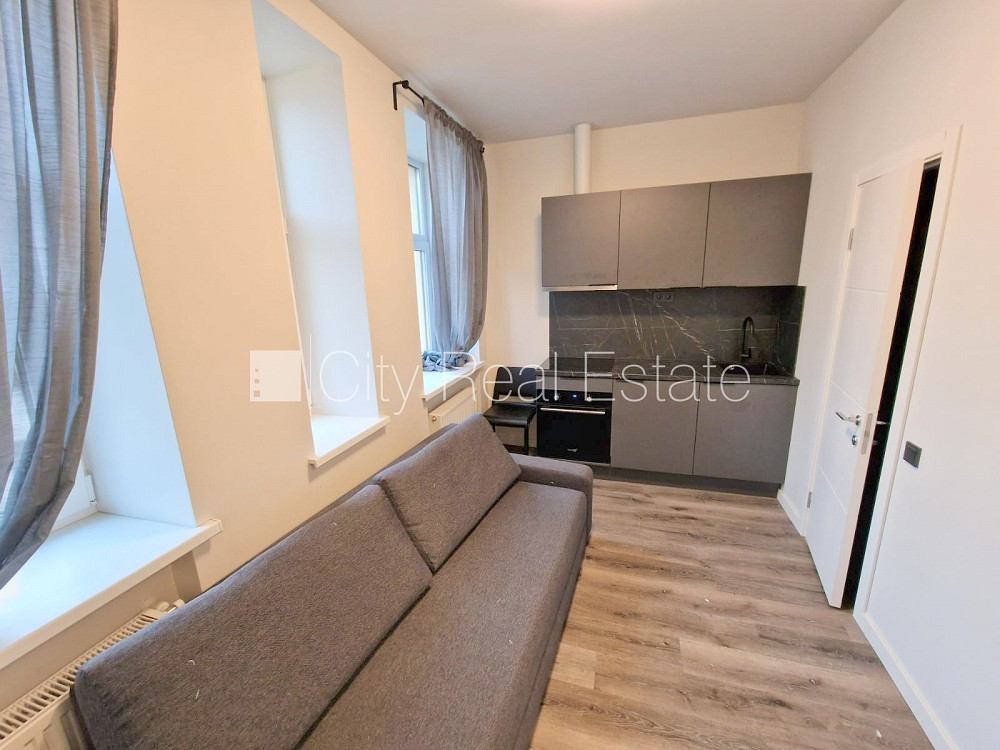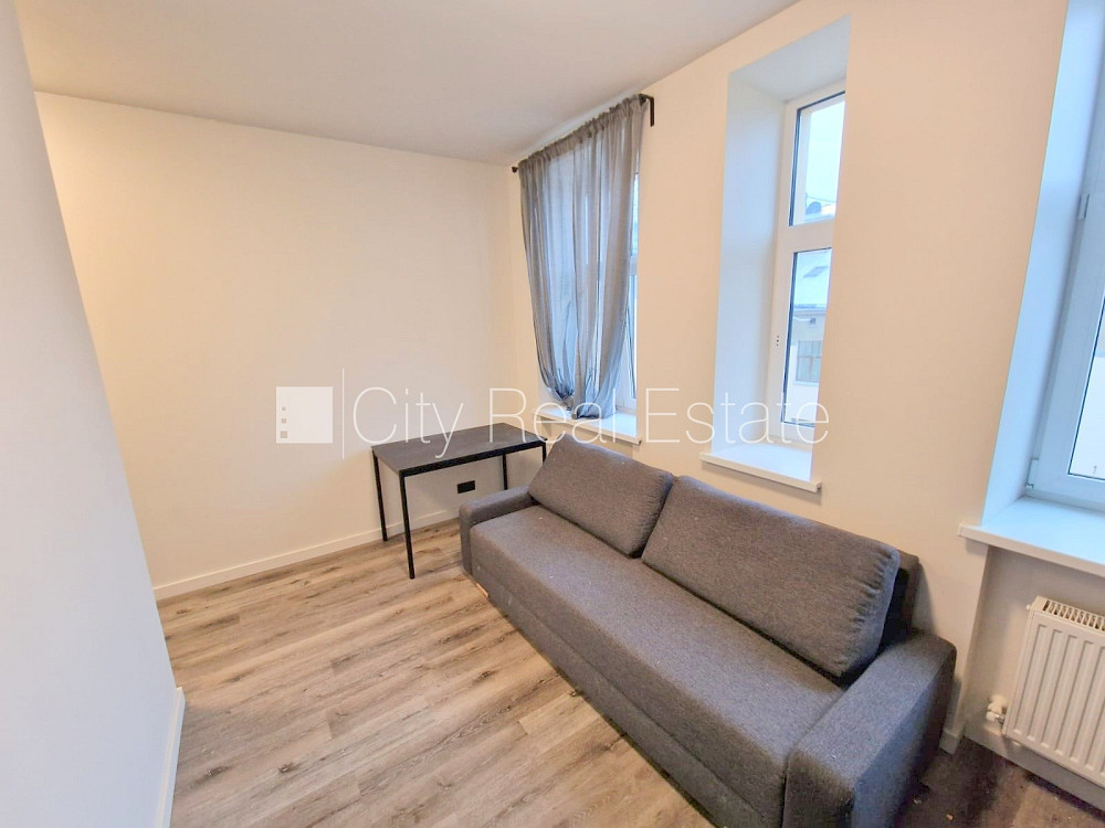 Pagalma ēka, renovēta māja, slēgts pagalms, apsargāts pagalms, ieeja no ielas un pagalma, kāpņu telpa pēc kapitālā remonta, logi vērsti uz pagalma pusi, plašs skats no loga, studio tipa, virtuve apvienota ar istabu, augstie griesti, centrālā apkure, pilnā apdare, plastikāta stikla pakešu logi, krāsotas sienas, jauna santehnika, lamināta parketa grīda, flīžu grīdas segums, sanitārais mezgls apvienots, dušas kabīne, tualete, iebūvēta virtuves iekārta, iebūvēti sienas skapji, izvelkamais stūra dīvāns, virtuves galds, krēsli, ledusskapis, elektriskā plīts, cepeškrāsns, tvaika nosūcējs, veļas mašīna, uz 1 gadu, uz 2 gadiem, ar iespēju pagarināt līgumu, atbrīvots, slēdzot īres līgumu, Jums būs jāmaksā par pirmo īres mēnesi , kā arī jāiemaksā drošības depozīts, izvēloties šo īpašumu, komisijas maksa par starpniecības pakalpojumiem ir vienāda ar vienu pusi (50%) no šī īpašuma viena mēneša īres maksas, CITY REAL ESTATE ID - 516777