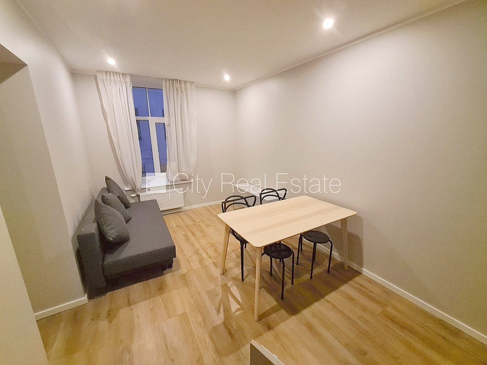 Pagalma ēka, renovēta māja, slēgts pagalms, ieeja no ielas un pagalma, kāpņu telpa pēc kapitālā remonta, logi vērsti uz pagalma pusi, studio tipa, virtuve apvienota ar istabu, centrālā apkure, pilnā apdare, plastikāta stikla pakešu logi, krāsotas sienas, jauna santehnika, lamināta parketa grīda, flīžu grīdas segums, sanitārais mezgls apvienots, dušas kabīne, tualete, iebūvēta virtuves iekārta, izvelkamais stūra dīvāns, gulta , virtuves galds, krēsli, skapis, ledusskapis, elektriskā plīts, indukcijas plīts, cepeškrāsns, tvaika nosūcējs, veļas mašīna, slēgta kāpņu telpa, izīrē ar visu bildēs redzamo aprīkojumu, uz 1 gadu, ar iespēju pagarināt līgumu, atbrīvots, slēdzot īres līgumu, Jums būs jāmaksā par pirmo īres mēnesi , kā arī jāiemaksā drošības depozīts viena mēneša īres maksas apmērā, izvēloties šo īpašumu, komisijas maksa par starpniecības pakalpojumiem ir vienāda ar vienu pusi (50%) no šī īpašuma viena mēneša īres maksas, CITY REAL ESTATE ID - 514499