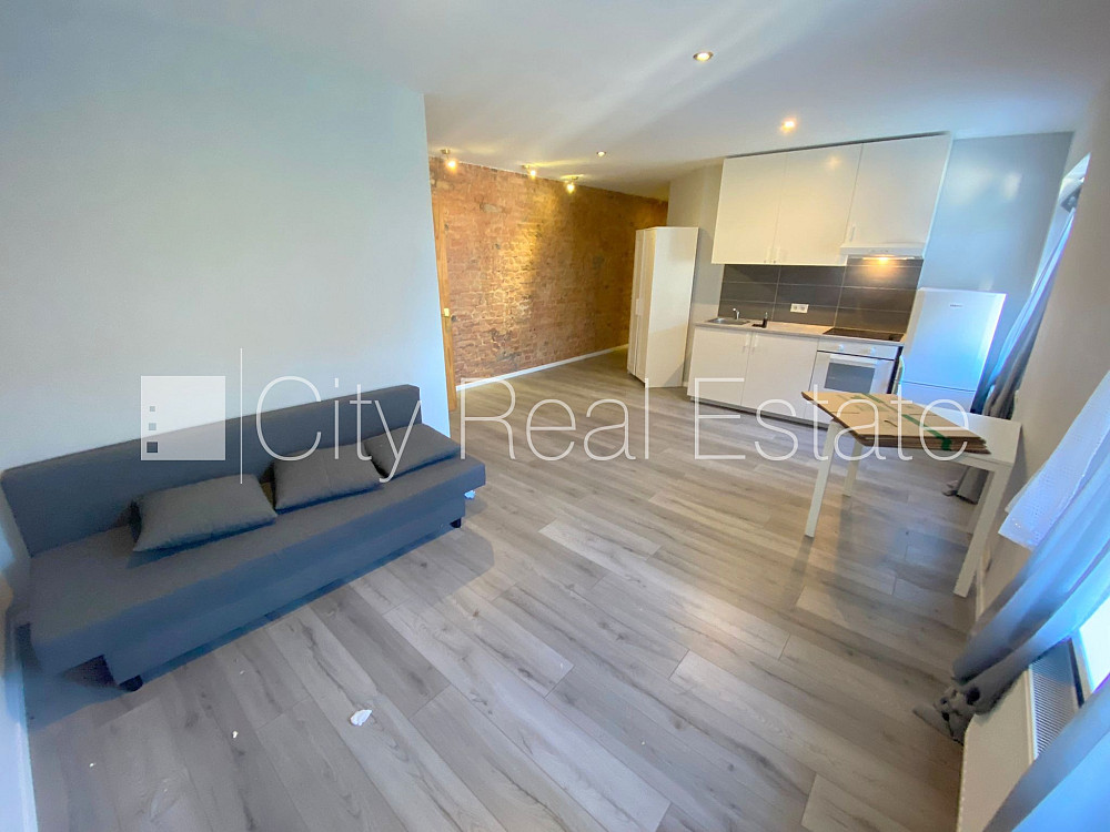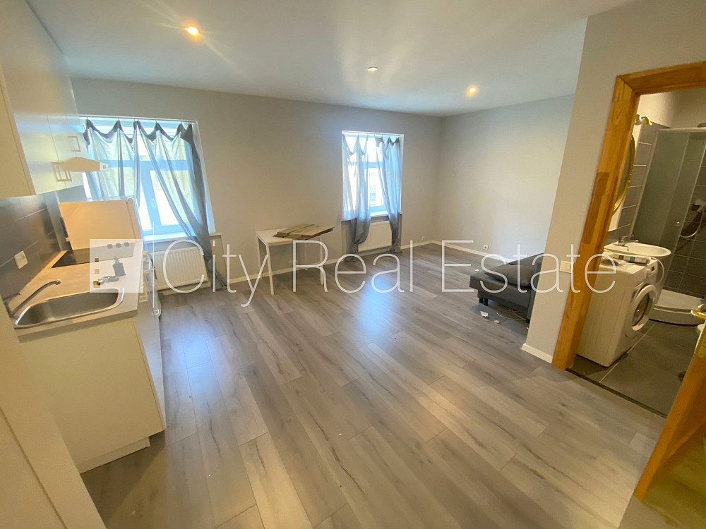 Pagalma ēka, renovēta māja, slēgts pagalms, ieeja no ielas un pagalma, kāpņu telpa pēc kosmētiskā remonta, logi vērsti uz ielas pusi, studio tipa, virtuve apvienota ar istabu, augstie griesti, centrālā apkure, pilnā apdare, plastikāta stikla pakešu logi, krāsotas sienas, jauna santehnika, lamināta parketa grīda, flīžu grīdas segums, sanitārais mezgls apvienots, dušas kabīne, tualete, iebūvēta virtuves iekārta, dīvāns, virtuves galds, krēsli, skapis, ledusskapis, elektriskā plīts, cepeškrāsns, tvaika nosūcējs, veļas mašīna, slēgta kāpņu telpa, izīrē ar visu bildēs redzamo aprīkojumu, atbrīvots, slēdzot īres līgumu, Jums būs jāmaksā par pirmo īres mēnesi , kā arī jāiemaksā drošības depozīts viena mēneša īres maksas apmērā, izvēloties šo īpašumu, komisijas maksa par starpniecības pakalpojumiem ir vienāda ar vienu pusi (50%) no šī īpašuma viena mēneša īres maksas, CITY REAL ESTATE ID - 510567