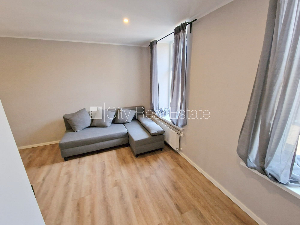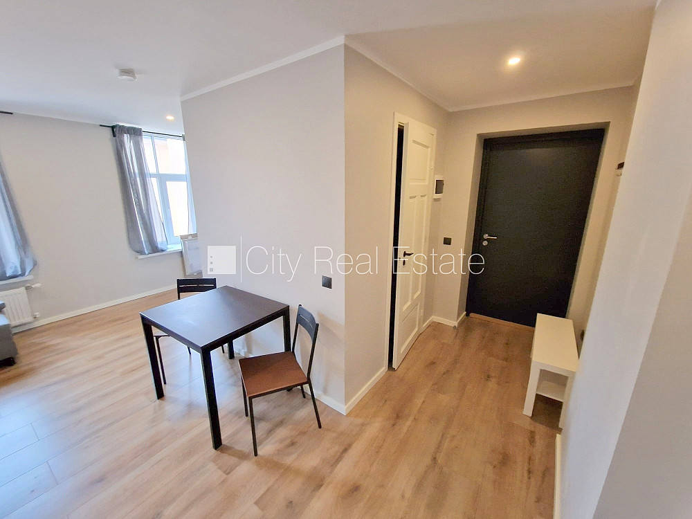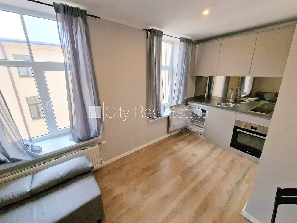 Pagalma ēka, renovēta māja, slēgts pagalms, ieeja no ielas un pagalma, kāpņu telpa pēc kapitālā remonta, logi vērsti uz pagalma pusi, studio tipa, virtuve apvienota ar istabu, augstie griesti, centrālā apkure, pilnā apdare, plastikāta stikla pakešu logi, krāsotas sienas, jauna santehnika, lamināta parketa grīda, flīžu grīdas segums, sanitārais mezgls apvienots, dušas kabīne, tualete, iebūvēta virtuves iekārta, izvelkamais stūra dīvāns, virtuves galds, krēsli, skapis, ledusskapis, elektriskā plīts, cepeškrāsns, tvaika nosūcējs, veļas mašīna, diennakts videonovērošana, slēgta kāpņu telpa, atbrīvots, slēdzot īres līgumu, Jums būs jāmaksā par pirmo īres mēnesi , kā arī jāiemaksā drošības depozīts viena mēneša īres maksas apmērā, izvēloties šo īpašumu, komisijas maksa par starpniecības pakalpojumiem ir vienāda ar vienu pusi (50%) no šī īpašuma viena mēneša īres maksas, CITY REAL ESTATE ID - 515943