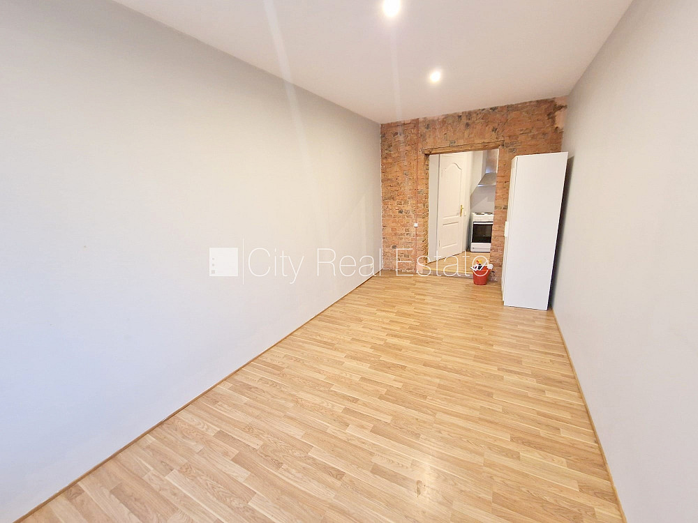 Pagalma ēka, renovēta māja, slēgts pagalms, ieeja no ielas un pagalma, kāpņu telpa pēc kosmētiskā remonta, logi vērsti uz ielas pusi, plašs skats no loga, studio tipa, virtuve apvienota ar istabu, augstie griesti, centrālā apkure, plastikāta stikla pakešu logi, krāsotas sienas, lamināta parketa grīda, sanitārais mezgls apvienots, dušas kabīne, tualete, iebūvēta virtuves iekārta, ledusskapis, elektriskā plīts, cepeškrāsns, tvaika nosūcējs, veļas mašīna, diennakts videonovērošana, slēgta kāpņu telpa, uz 1 gadu, uz 2 gadiem, ar iespēju pagarināt līgumu, atbrīvots, slēdzot īres līgumu, Jums būs jāmaksā par pirmo īres mēnesi , kā arī jāiemaksā drošības depozīts, izvēloties šo īpašumu, komisijas maksa par starpniecības pakalpojumiem ir vienāda ar vienu pusi (50%) no šī īpašuma viena mēneša īres maksas, CITY REAL ESTATE ID - 505850