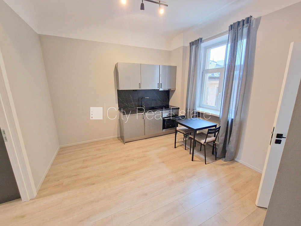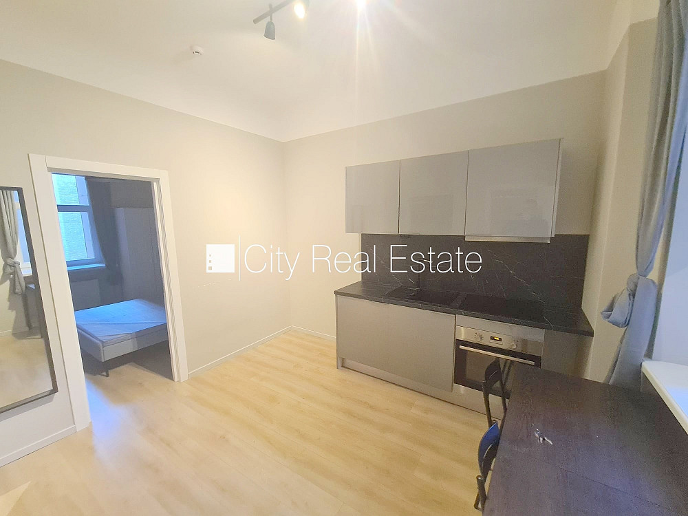 Pagalma ēka, renovēta māja, slēgts pagalms, ieeja no ielas un pagalma, ir lifts, kāpņu telpa pēc kapitālā remonta, logi vērsti uz pagalma pusi, guļamistabu skaits 1 gab., studio tipa, virtuve apvienota ar istabu, augstie griesti, centrālā apkure, pilnā apdare, plastikāta stikla pakešu logi, krāsotas sienas, jauna santehnika, lamināta parketa grīda, flīžu grīdas segums, sanitārais mezgls apvienots, dušas kabīne, tualete, iebūvēta virtuves iekārta, gulta , virtuves galds, krēsli, skapis, ledusskapis, elektriskā plīts, cepeškrāsns, tvaika nosūcējs, veļas mašīna, izīrē ar visu bildēs redzamo aprīkojumu, uz 1 gadu, uz 2 gadiem, ar iespēju pagarināt līgumu, atbrīvots, slēdzot īres līgumu, Jums būs jāmaksā par pirmo īres mēnesi , kā arī jāiemaksā drošības depozīts viena mēneša īres maksas apmērā, izvēloties šo īpašumu, komisijas maksa par starpniecības pakalpojumiem ir vienāda ar vienu pusi (50%) no šī īpašuma viena mēneša īres maksas, CITY REAL ESTATE ID - 516694