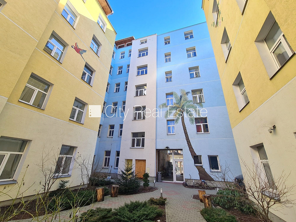Pagalma ēka, renovēta māja, slēgts pagalms, ieeja no pagalma, kāpņu telpa pēc kosmētiskā remonta, logi vērsti uz pagalma pusi, studio tipa, virtuve apvienota ar istabu, augstie griesti, centrālā apkure, plastikāta stikla pakešu logi, krāsotas sienas, jauna santehnika, lamināta parketa grīda, sanitārais mezgls apvienots, dušas kabīne, iebūvēta virtuves iekārta, virtuves galds, krēsli, ledusskapis, elektriskā plīts, cepeškrāsns, tvaika nosūcējs, veļas mašīna, atbrīvots, slēdzot īres līgumu, Jums būs jāmaksā par pirmo īres mēnesi , kā arī jāiemaksā drošības depozīts viena mēneša īres maksas apmērā, izvēloties šo īpašumu, komisijas maksa par starpniecības pakalpojumiem ir vienāda ar vienu pusi (50%) no šī īpašuma viena mēneša īres maksas, CITY REAL ESTATE ID - 516752