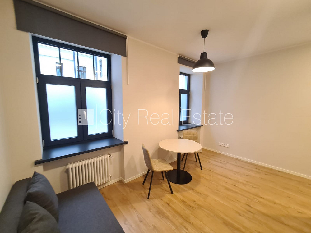 Pagalma ēka, renovēta māja, slēgts pagalms, ieeja no pagalma, ir lifts, kāpņu telpa pēc kapitālā remonta, studio tipa, virtuve apvienota ar istabu, augstie griesti, centrālā apkure, pilnā apdare, koka stikla pakešu logi, krāsotas sienas, jauna santehnika, lamināta parketa grīda, flīžu grīdas segums, sanitārais mezgls apvienots, dušas kabīne, tualete, iebūvēta virtuves iekārta, iebūvēti sienas skapji, dīvāns, virtuves galds, krēsli, ledusskapis, elektriskā plīts, cepeškrāsns, tvaika nosūcējs, mikroviļņu krāsns, veļas mašīna, slēgta kāpņu telpa, izīrē ar visu bildēs redzamo aprīkojumu, atbrīvo augustā, slēdzot īres līgumu, Jums būs jāmaksā par pirmo īres mēnesi , kā arī jāiemaksā drošības depozīts viena mēneša īres maksas apmērā, izvēloties šo īpašumu, komisijas maksa par starpniecības pakalpojumiem ir vienāda ar vienu pusi (50%) no šī īpašuma viena mēneša īres maksas, CITY REAL ESTATE ID - 513113