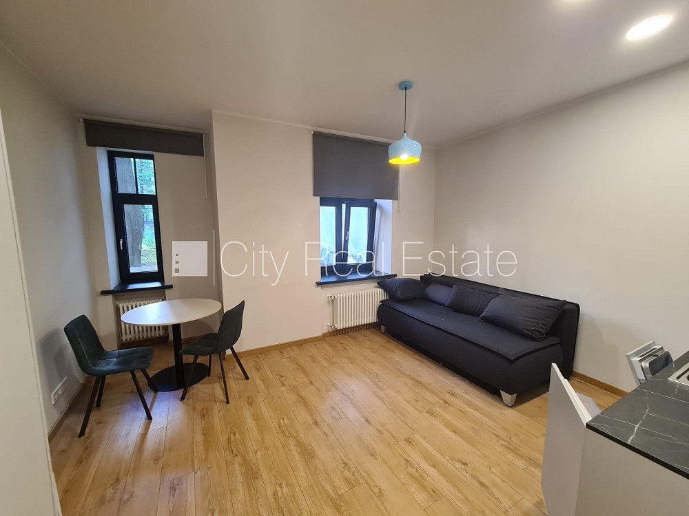 Pagalma ēka, renovēta māja, slēgts pagalms, ieeja no pagalma, ir lifts, kāpņu telpa pēc kapitālā remonta, logi vērsti uz pagalma pusi, studio tipa, virtuve apvienota ar istabu, augstie griesti, centrālā apkure, pilnā apdare, koka stikla pakešu logi, krāsotas sienas, jauna santehnika, parketa grīda, flīžu grīdas segums, sanitārais mezgls apvienots, dušas kabīne, tualete, iebūvēta virtuves iekārta, iebūvēti sienas skapji, izvelkamais stūra dīvāns, virtuves galds, krēsli, ledusskapis, trauku mazgājamā mašīna, elektriskā plīts, tvaika nosūcējs, mikroviļņu krāsns, veļas mašīna, slēgta kāpņu telpa, uz 1 gadu, ar iespēju pagarināt līgumu, atbrīvo augustā, slēdzot īres līgumu, Jums būs jāmaksā par pirmo īres mēnesi , kā arī jāiemaksā drošības depozīts viena mēneša īres maksas apmērā, izvēloties šo īpašumu, komisijas maksa par starpniecības pakalpojumiem ir vienāda ar vienu pusi (50%) no šī īpašuma viena mēneša īres maksas, CITY REAL ESTATE ID - 513278