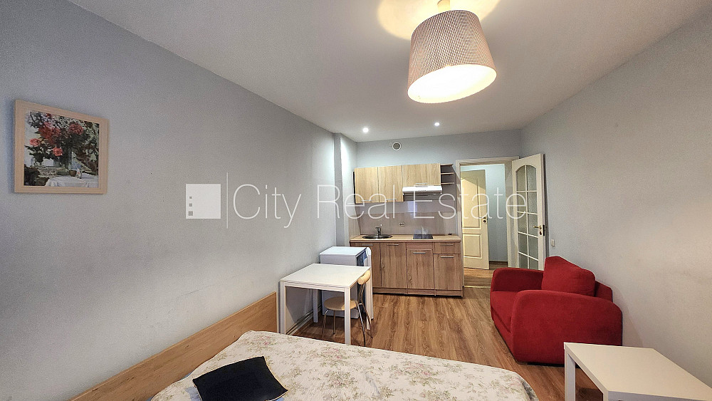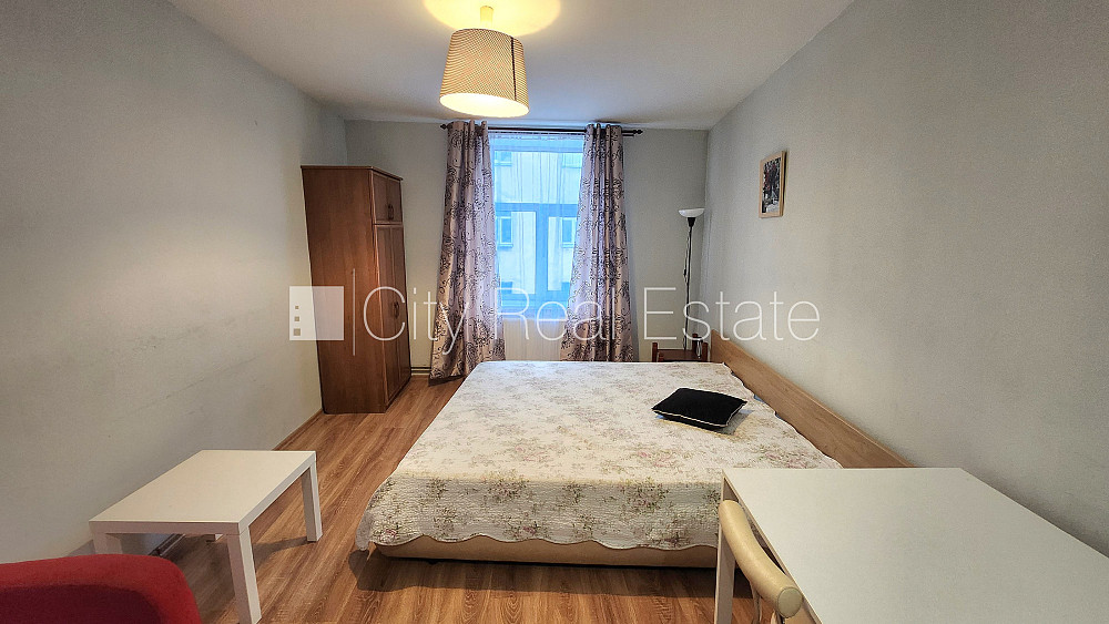 Pagalma ēka, renovēta māja, slēgts pagalms, iespēja nomāt autostāvvietu, ieeja no ielas, kāpņu telpa pēc kosmētiskā remonta, logi vērsti uz pagalma pusi, studio tipa, virtuve apvienota ar istabu, augstie griesti, centrālā apkure, boilers karstajam ūdenim, plastikāta stikla pakešu logi, krāsotas sienas, lamināta parketa grīda, flīžu grīdas segums, sanitārais mezgls apvienots, dušas kabīne, tualete, iebūvēta virtuves iekārta, gulta , skapis, elektriskā plīts, tvaika nosūcējs, veļas mašīna, slēgta kāpņu telpa, izīrē ar visu bildēs redzamo aprīkojumu, atbrīvots, slēdzot īres līgumu, Jums būs jāmaksā par pirmo īres mēnesi , kā arī jāiemaksā drošības depozīts viena mēneša īres maksas apmērā, izvēloties šo īpašumu, komisijas maksa par starpniecības pakalpojumiem ir vienāda ar vienu pusi (50%) no šī īpašuma viena mēneša īres maksas, CITY REAL ESTATE ID - 508860